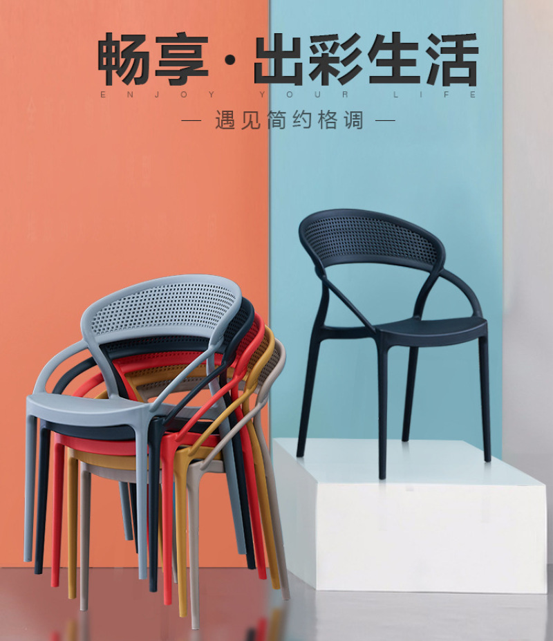 北欧靠背椅子个性全塑料餐椅塑胶椅子阳台椅书房椅子北欧休闲椅子