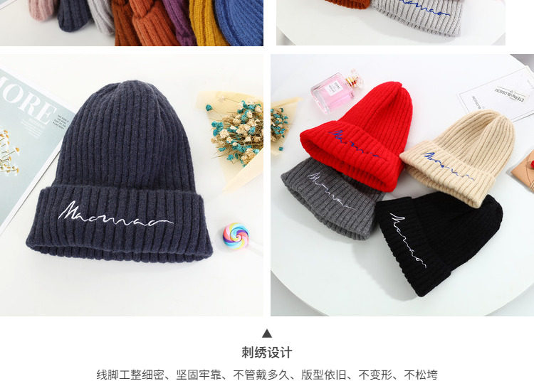 毛线帽子女 秋冬天韩版甜美可爱时尚潮牌百搭ins刺绣针织帽男冷帽 English | 投诉