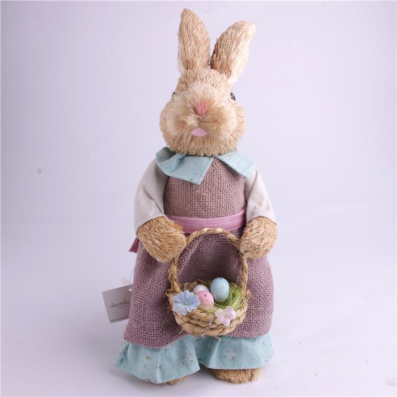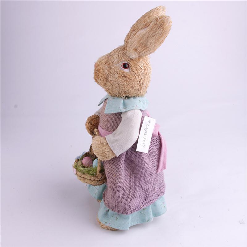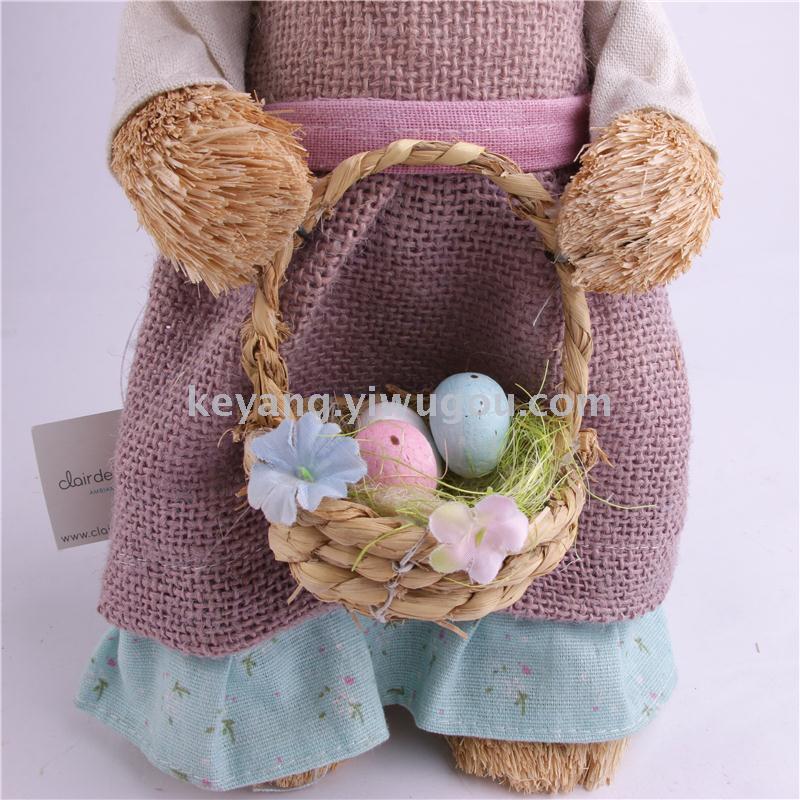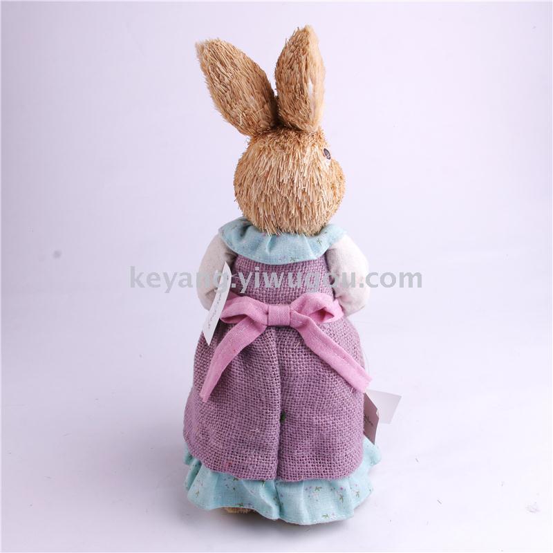 仿真动物稻草人家居装饰拍摄道具编织兔子幼儿园用品外婆兔