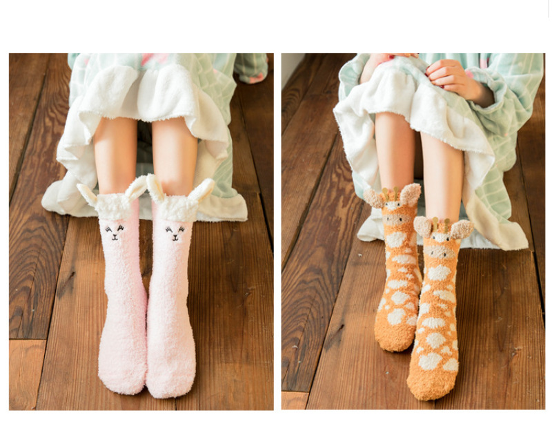 珊瑚绒袜子秋冬保暖可爱卡通圣诞袜加厚保暖地板袜睡眠袜子厂家 投诉