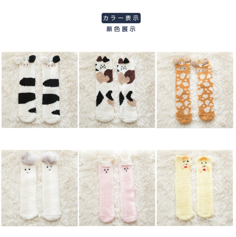 珊瑚绒袜子秋冬保暖可爱卡通圣诞袜加厚保暖地板袜睡眠袜子厂家