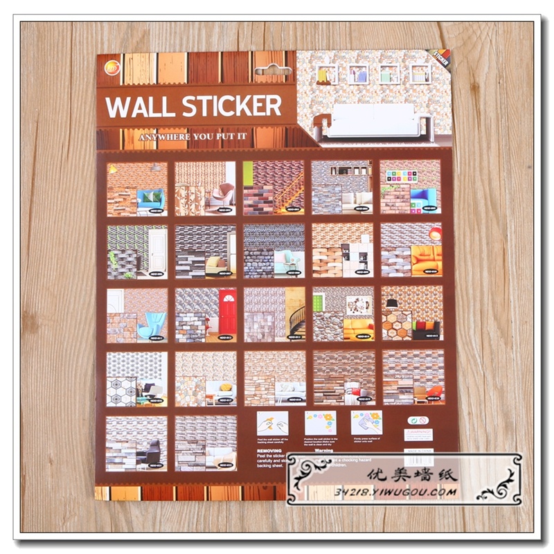 产品名称:仿砖纹自粘墙面餐厅立体3D墙纸PVC材质无刺激防污墙纸背景墙贴纸 产品材质:PVC材质 产品特点:自粘,PVC材质防水防污耐磨 产品风格:仿砖纹设计 使用方法:自粘,撕开即可使用 产品颜色:多款供选