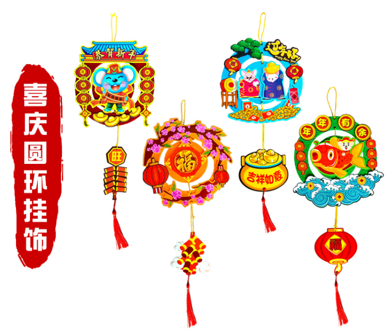 品名:DIY布质喜庆圆环挂饰(共四款)