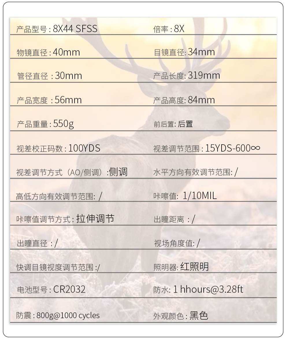 T-EAGLE突鹰SR8X44SFIR侧调焦带灯定倍瞄准器 投诉