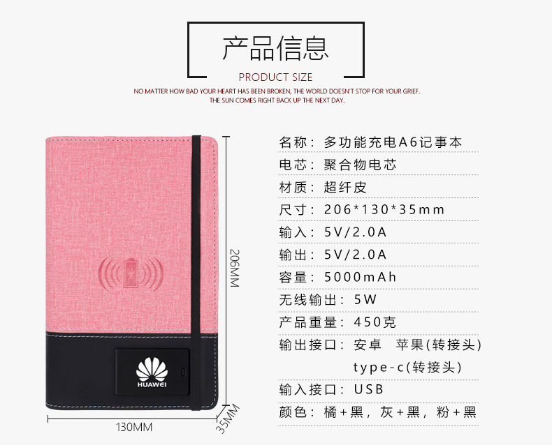 Include: A6 Notebook + Power Bank+ Wireless Charger + LED LOGO