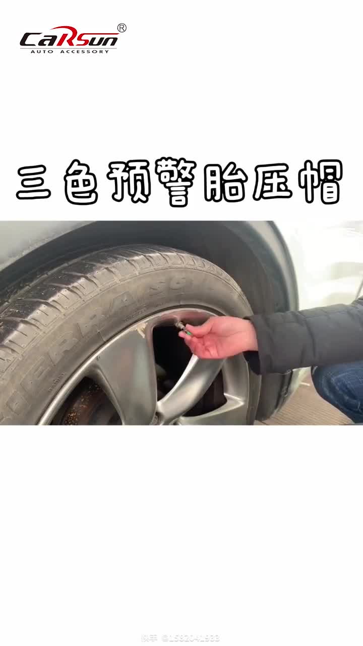 产品特点:胎压警示帽是一种针对测量轮胎气压辅助工具,将胎压帽锁固与轮胎气嘴之上,直接显示透明盖内的颜色变化