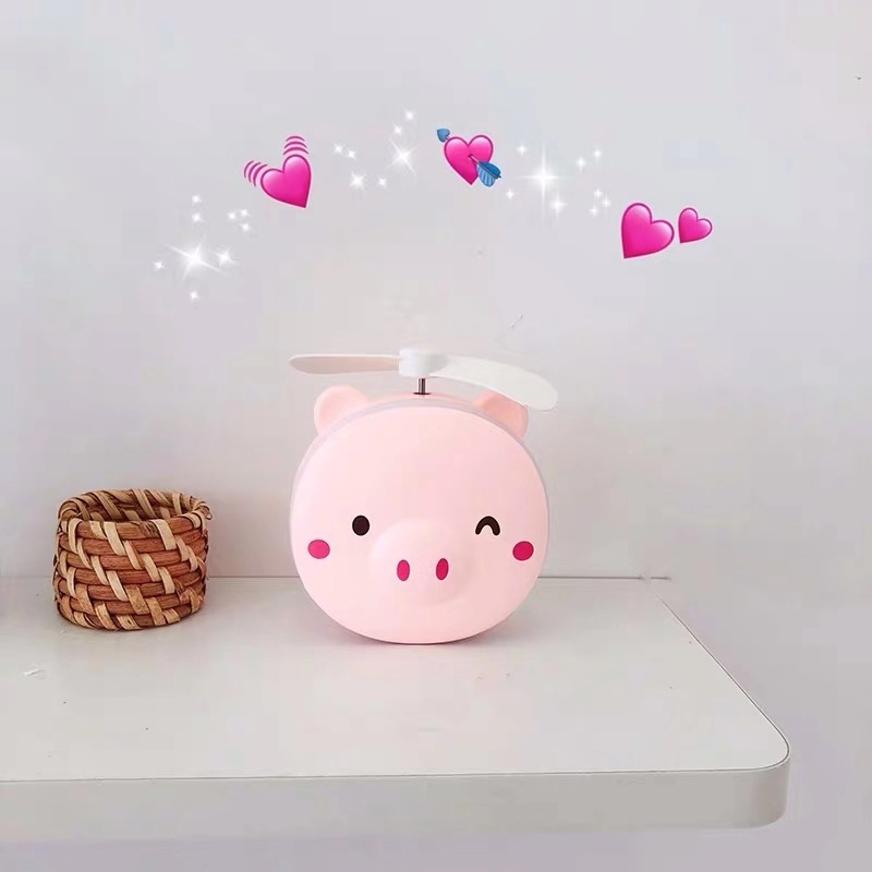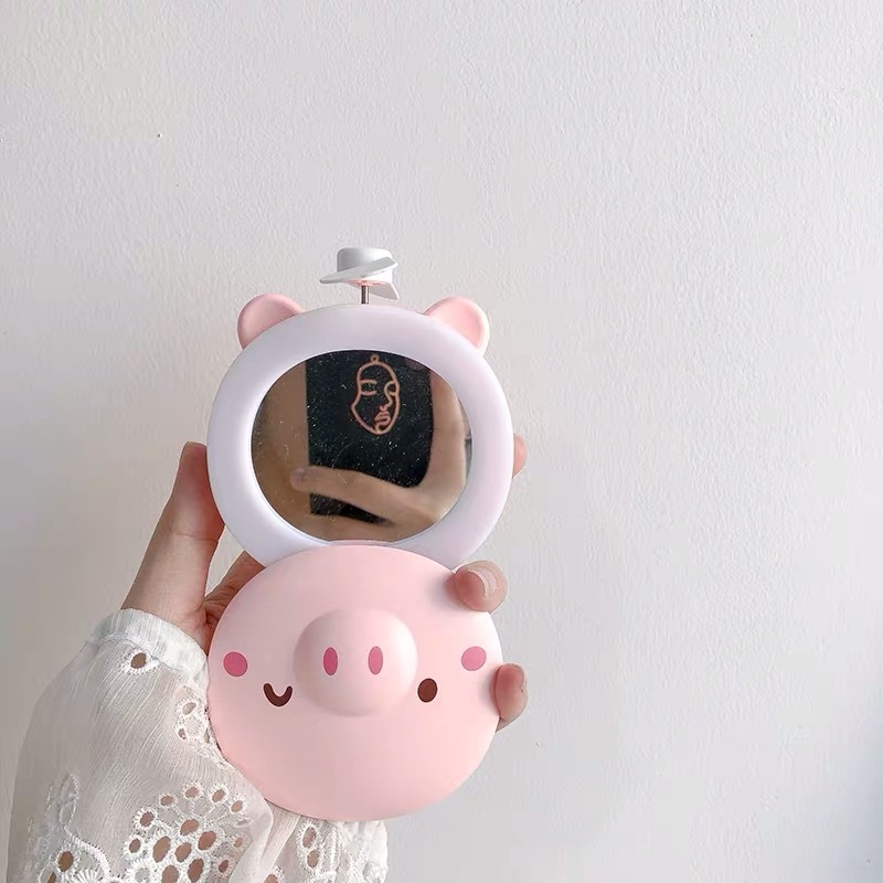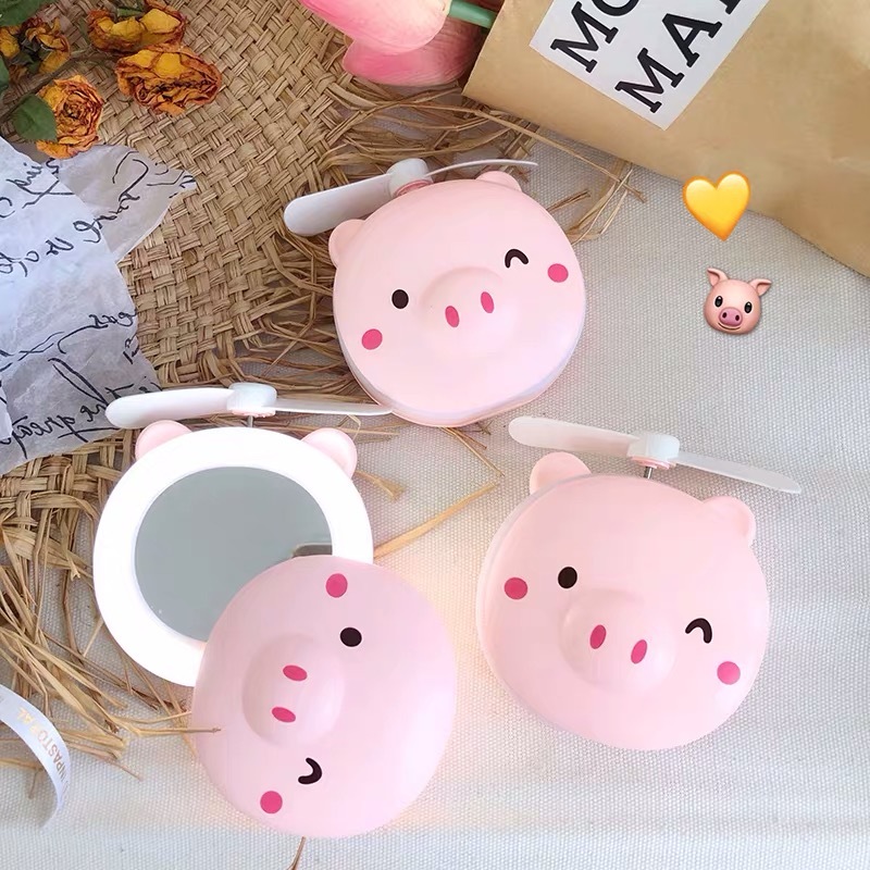 小猪抖音美妆镜小风扇宿舍神器带灯可爱学生便携式电小型镜子同款