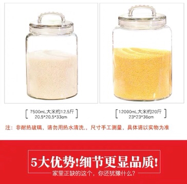 玻璃大米桶无铅加厚密封罐厨房五谷杂粮桶储物罐泡菜坛子米缸大号 投诉