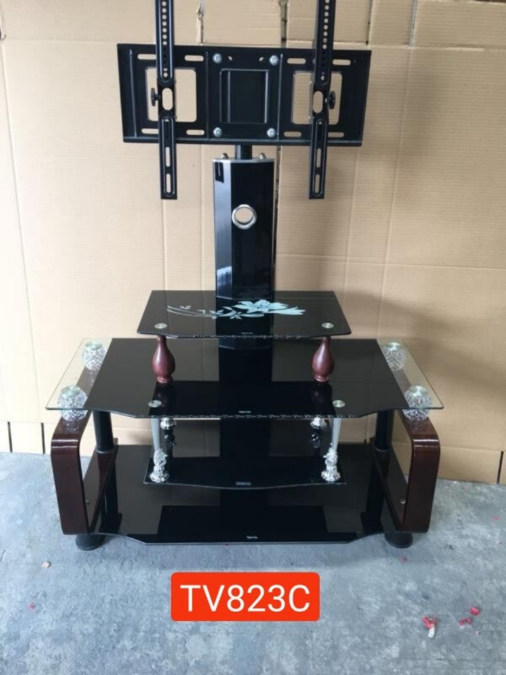 玻璃电视桌电视支架,曲木玻璃电视挂架桌子 投诉