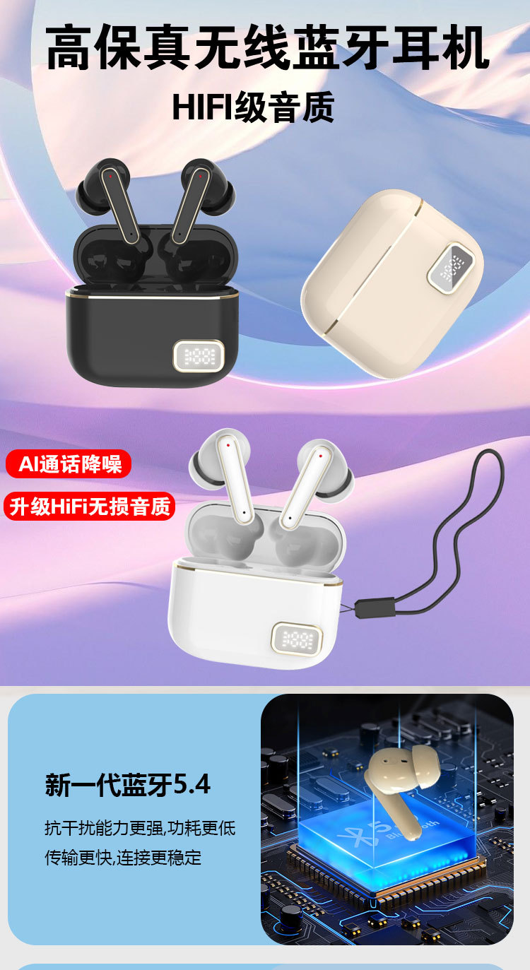 热销D38无线蓝牙耳机 双耳TWS触控数显电竞低功耗降噪5.3无线耳机 投诉