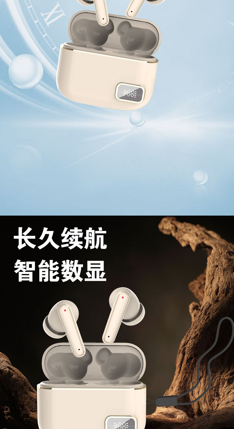热销D38无线蓝牙耳机 双耳TWS触控数显电竞低功耗降噪5.3无线耳机