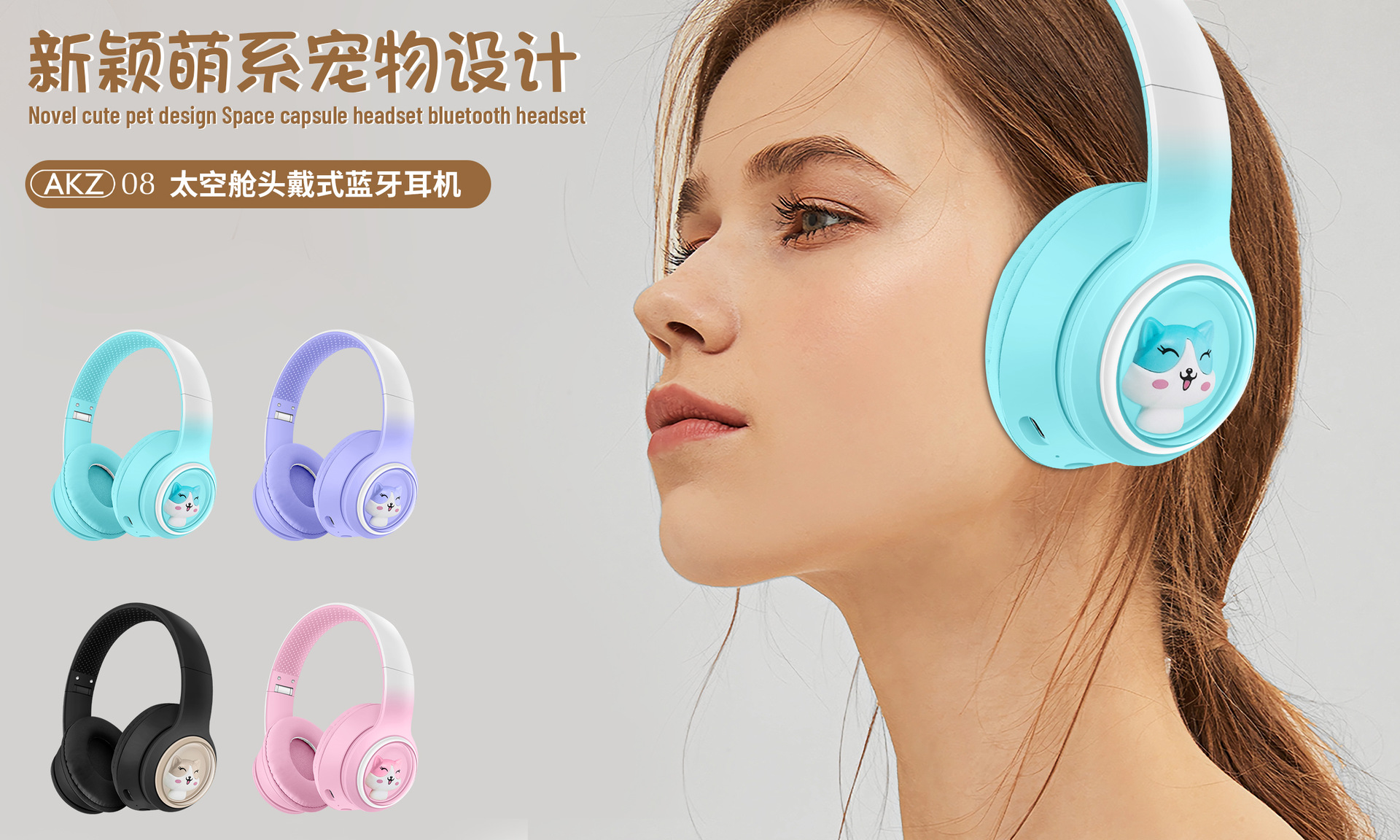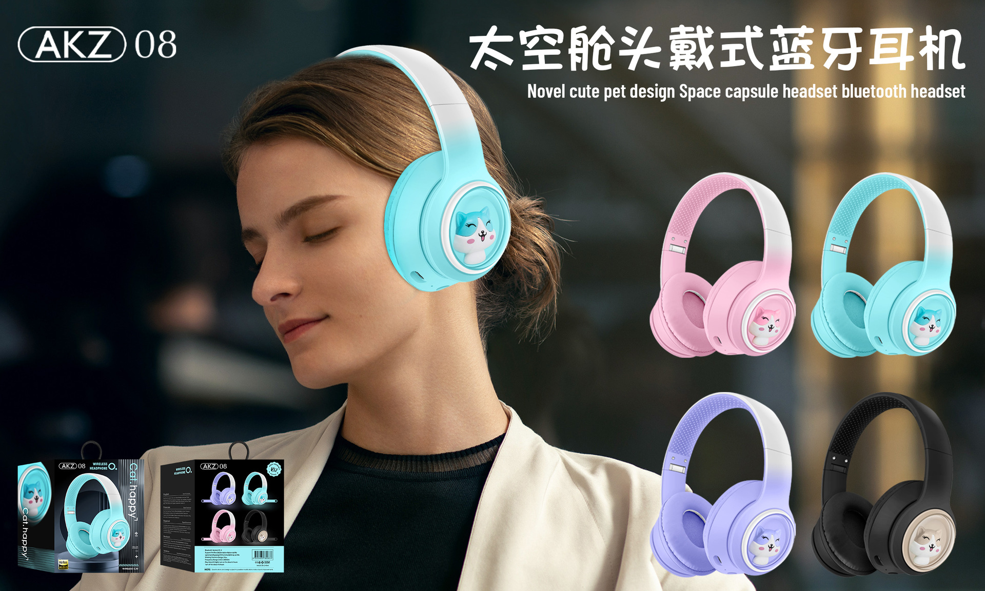 跨境爆款新款头戴式AKZ-08变色宠萌蓝牙耳机 卡通造型猫耳朵耳塞