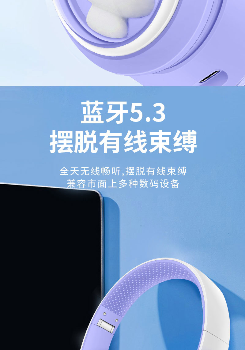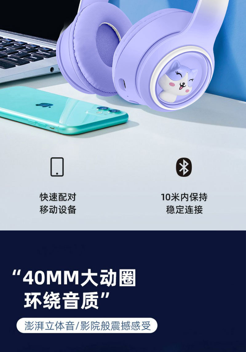 跨境爆款新款头戴式AKZ-08变色宠萌蓝牙耳机 卡通造型猫耳朵耳塞 投诉