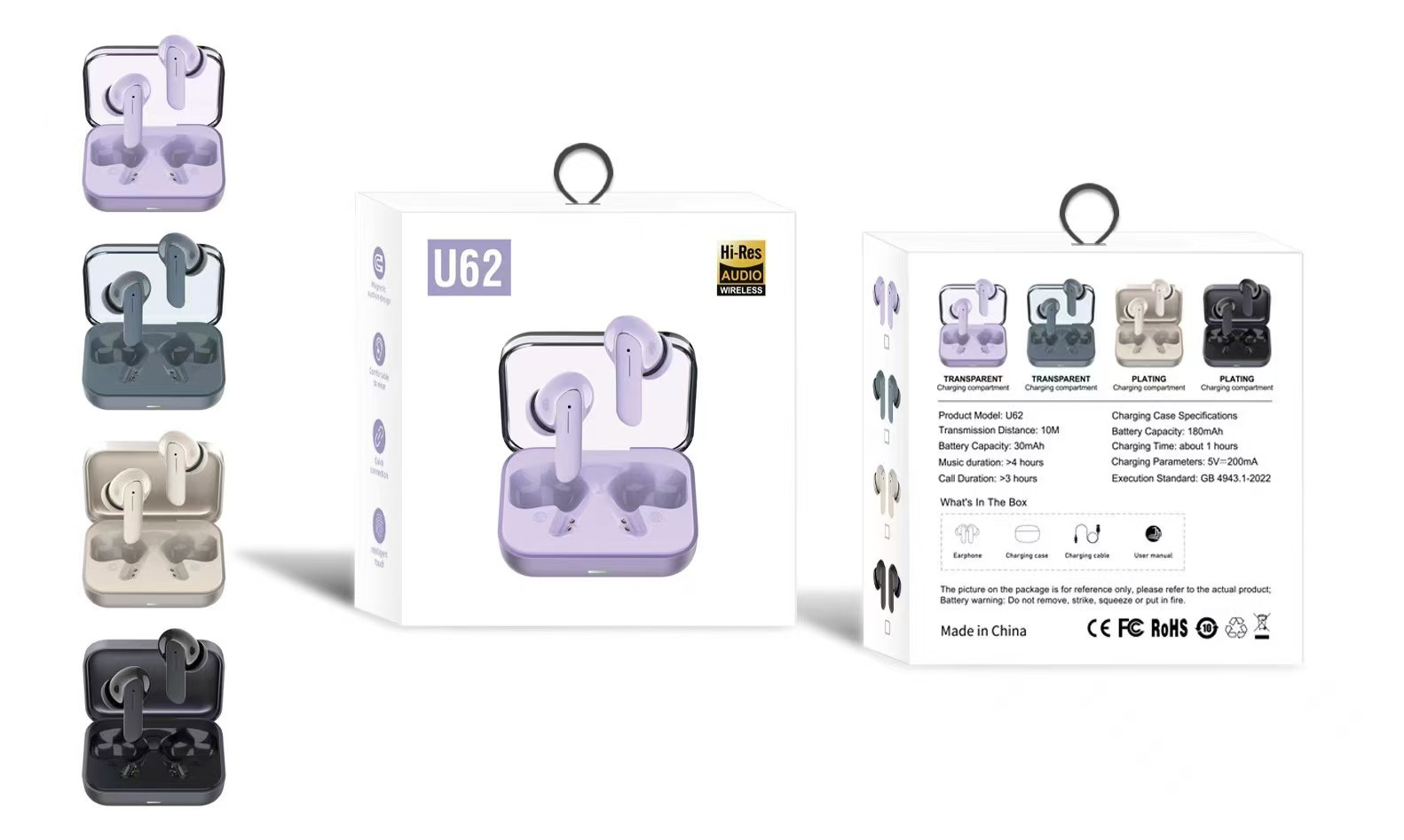 U62无线蓝牙入耳式运动耳机 通话听歌蓝牙触摸控超长续航降噪耳机