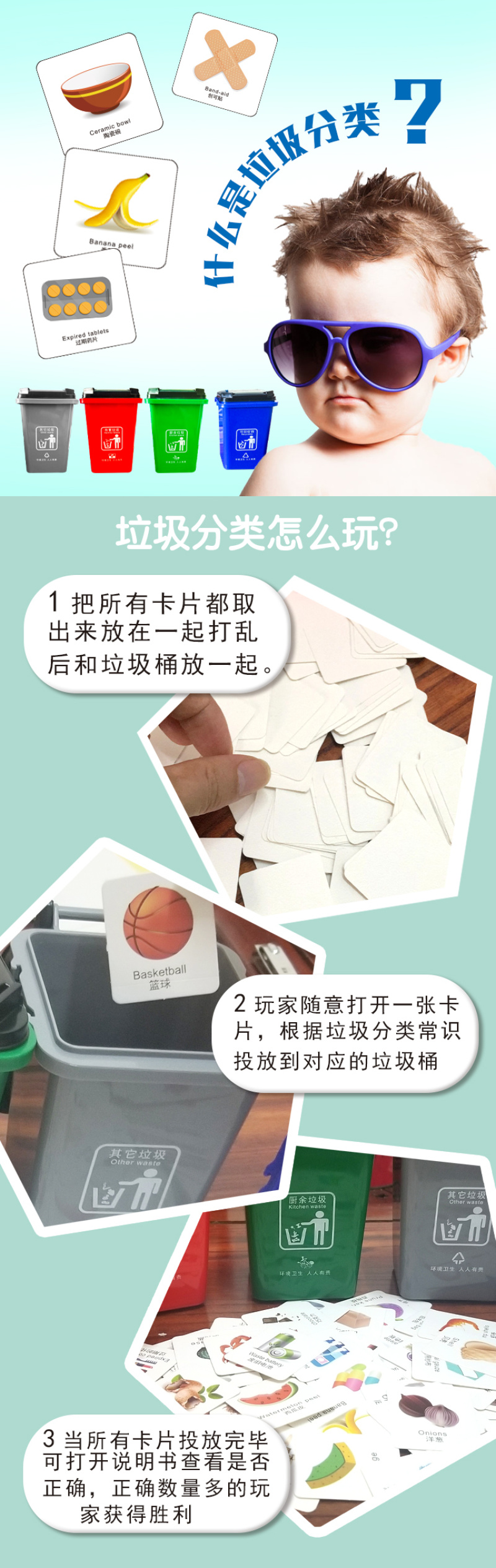 垃圾分类玩具 垃圾桶幼儿园教具儿童早教益智桌面游戏厂家直销 投诉