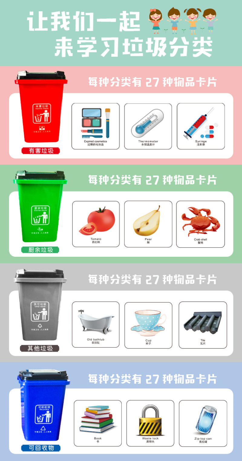 垃圾分类玩具 垃圾桶幼儿园教具儿童早教益智桌面游戏厂家直销