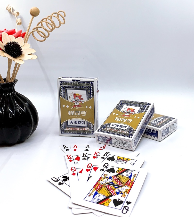 黑猫神棋牌耐折性优,光滑度高,光泽亮,弹性好,环保油墨,材质佳。