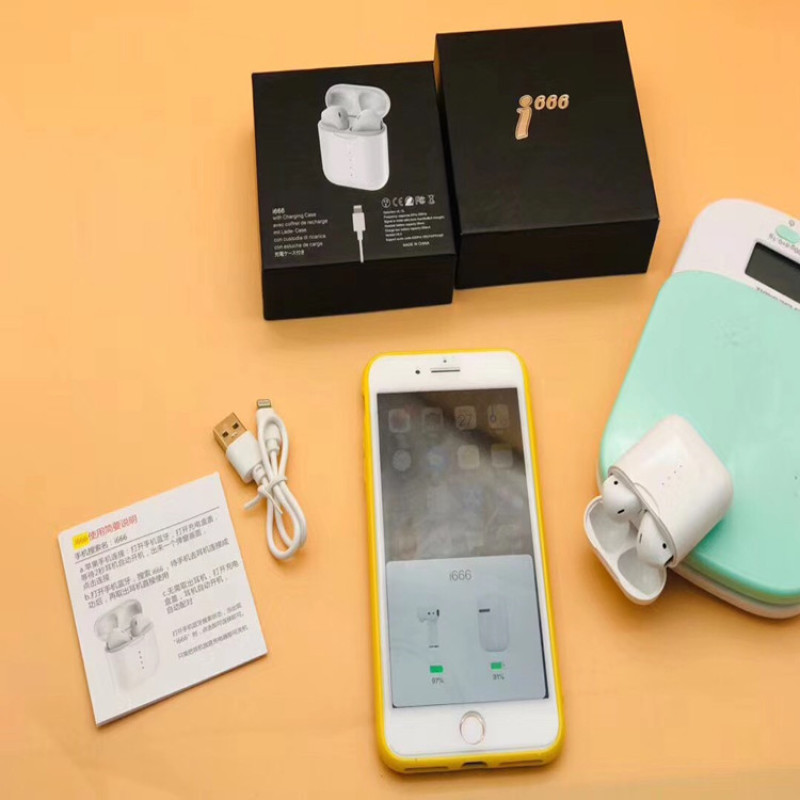 外贸新款 i666TWS无线蓝牙耳机 触摸弹窗立体声双耳耳机 无线充电 投诉