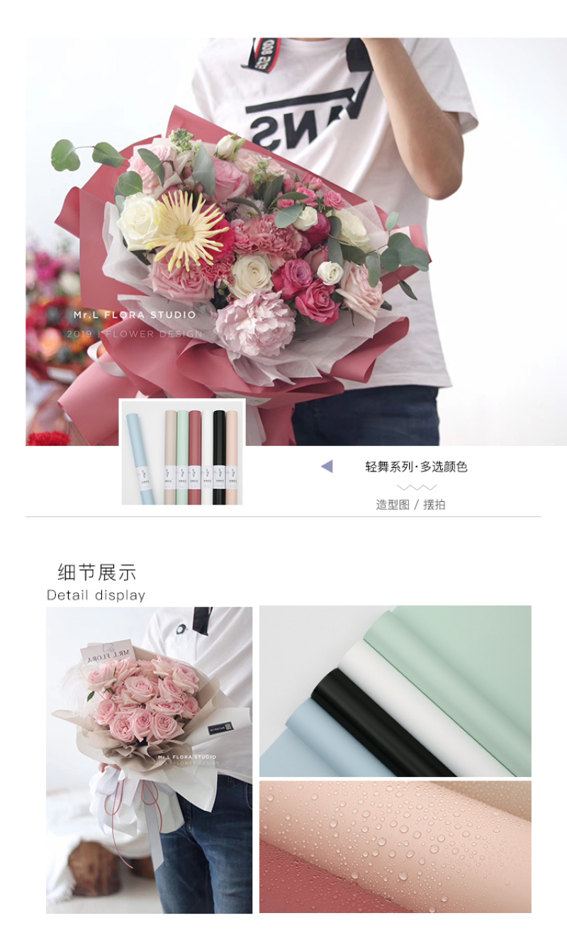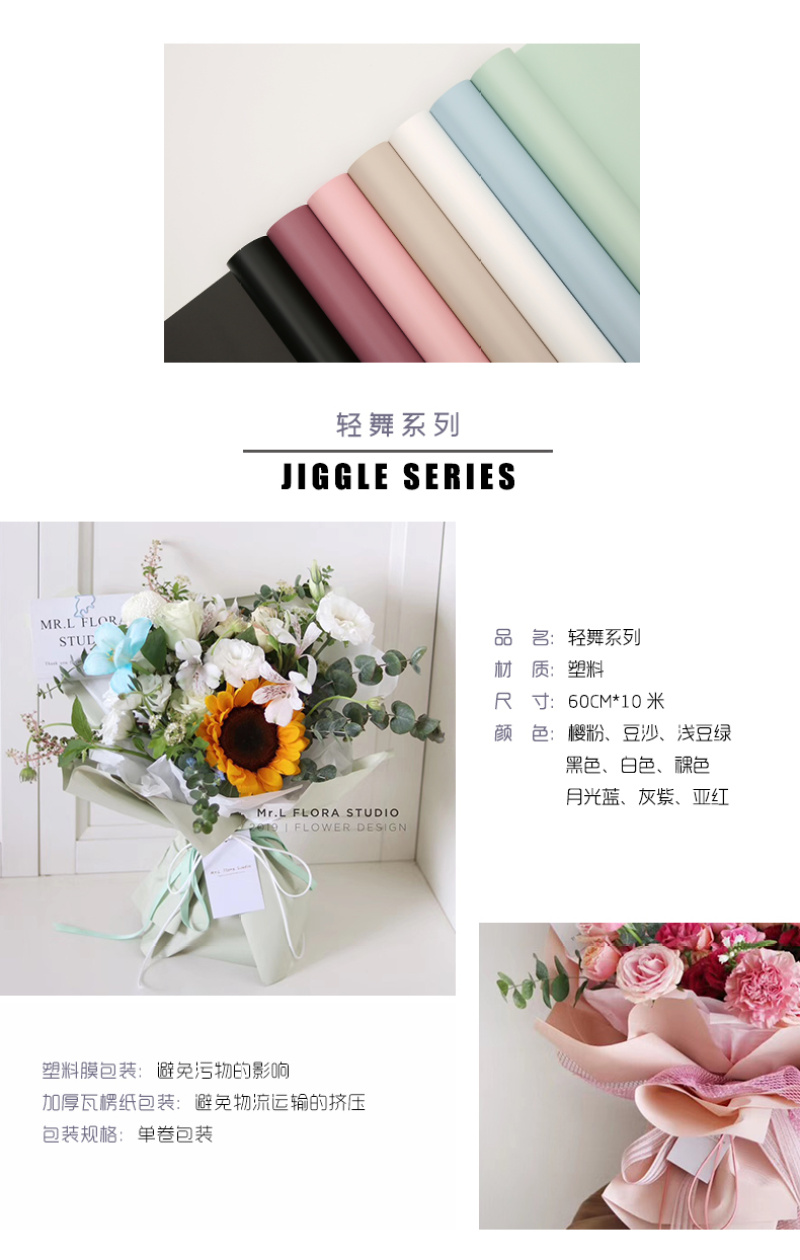 花衣裳新品辛西娅纸轻舞单色卷装包装纸纯色鲜花花束防水包装 投诉