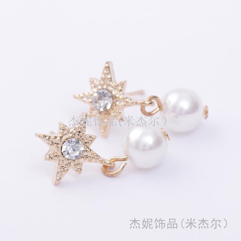 日韩新款少女甜美气质高雅名媛水钻雪花珍珠简约大方耳环饰品 English | 投诉