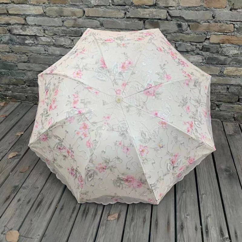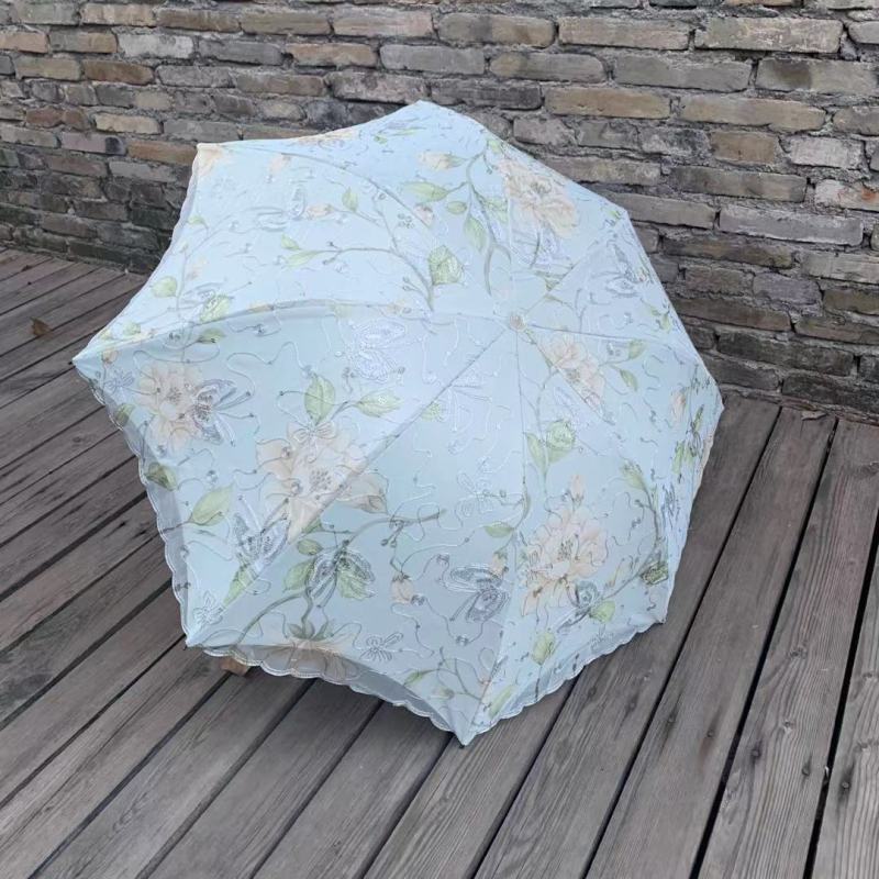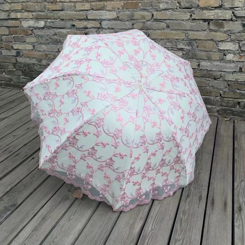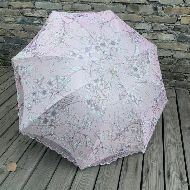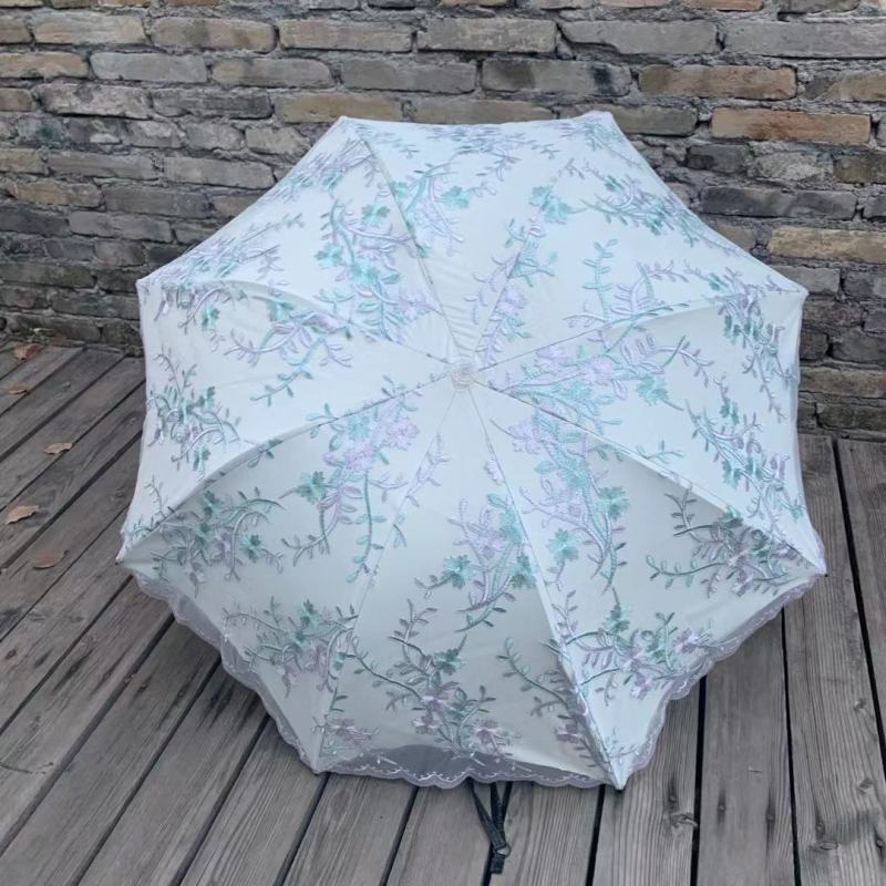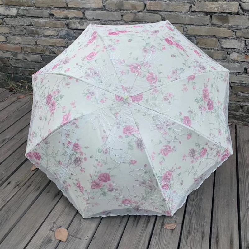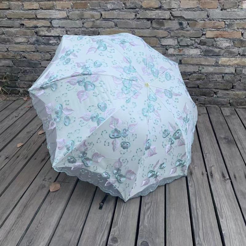 双层绣花三折伞 夏季UV防嗮双层伞 植绒刺绣工艺遮阳伞 parasol 投诉