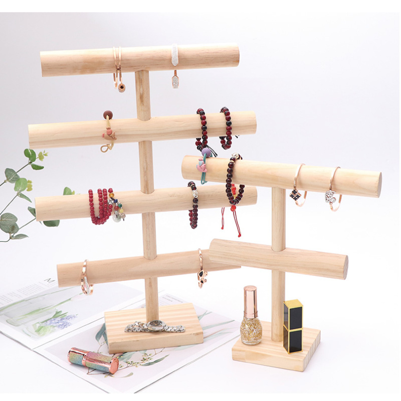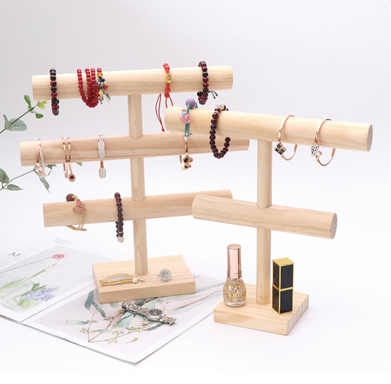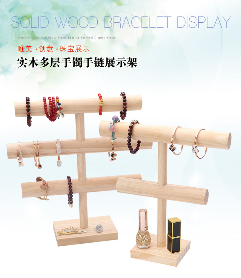 原木手镯项链展示架多层实木挂手串手链收纳架子木质首饰架道具