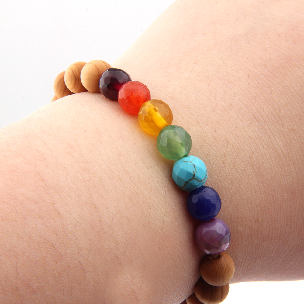 简约 七彩琉璃珠 木珠 手工串珠 手环 厂家定制手链批发