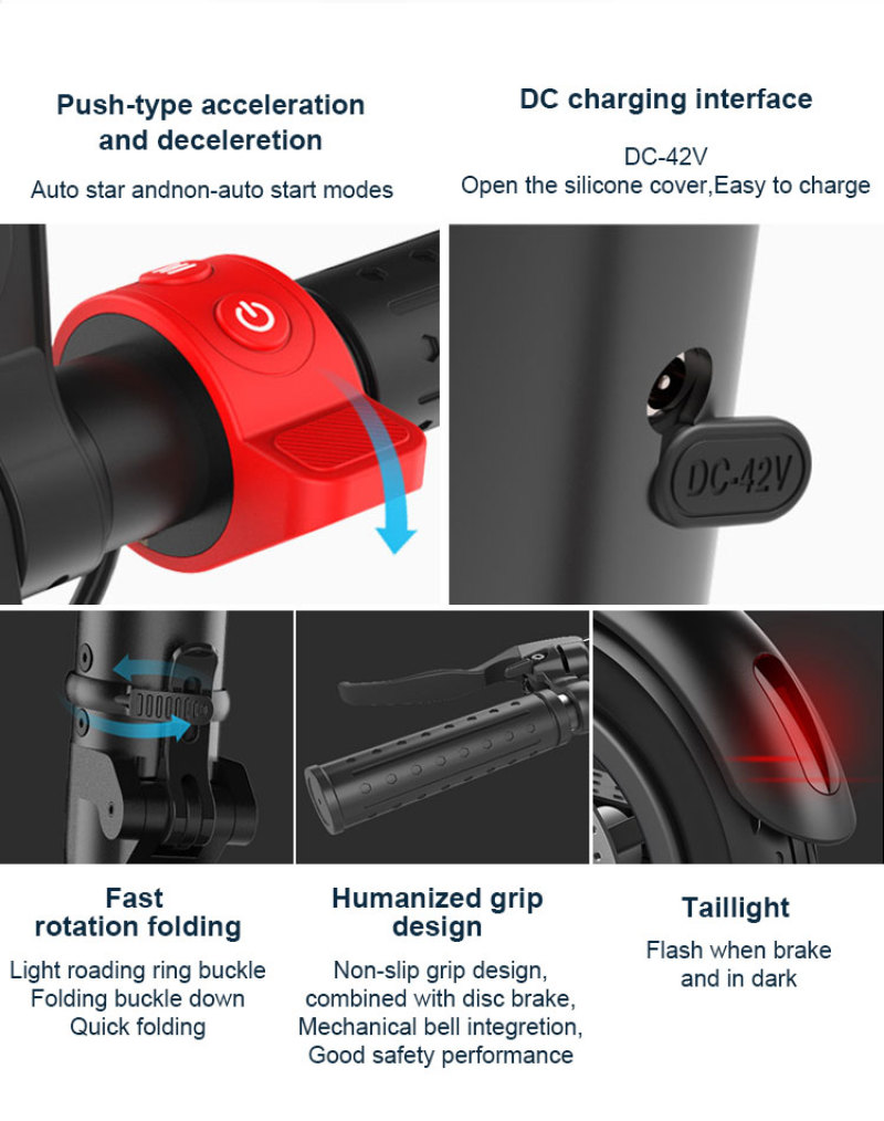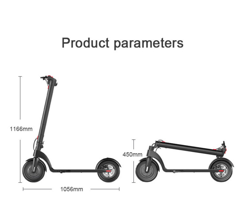 车架:铝合金 功率:350w 电池:锂电池36V5.2AH 轮胎:8.5寸 时速:32km/h 公里数:20km 充电:2-3小时 重量:12.5公斤 大小:1056*420*1166mm