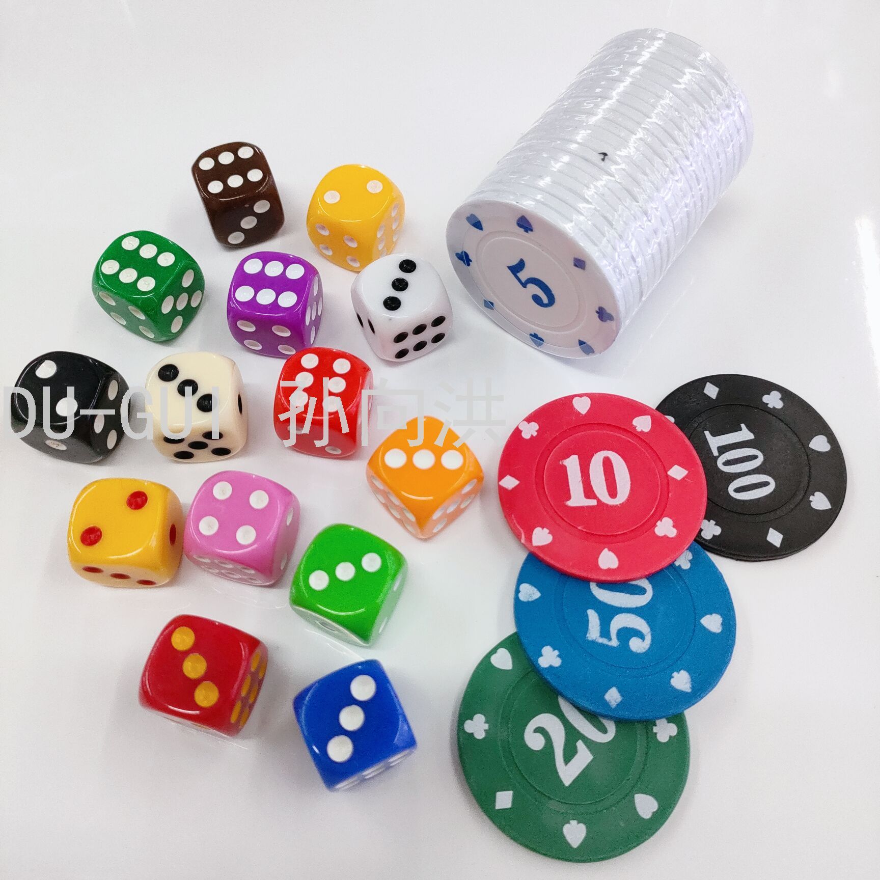 义乌赌鬼娱乐用品 {DU-GUI] 主营骰子 塑料棋子 筹码游戏币 大富翁游戏 麻将 、骰盅、塑料卡座、筹码、沙漏,丝印移印热转印上百种不同款式可供选购,诚信经营,量大从优