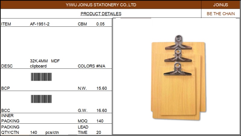 32K,4MM,蝴蝶夹桃型夹密度板板夹木板夹AF-1951-2 投诉