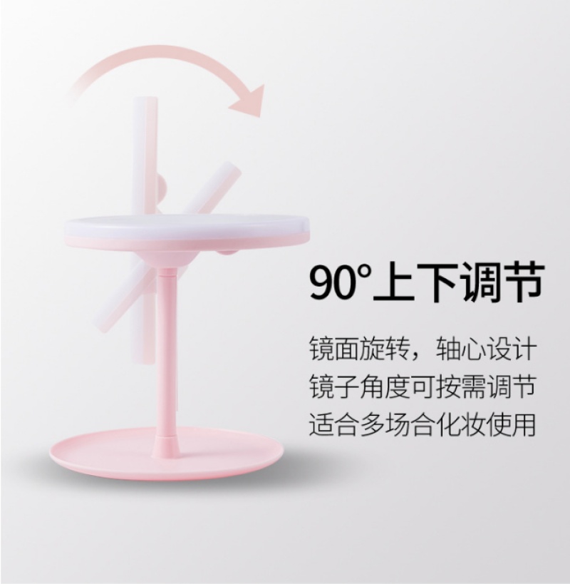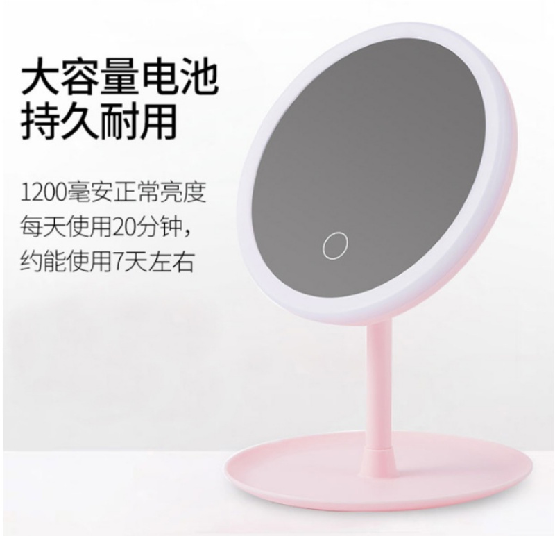 led化妆镜带灯台式可充电折叠少女网红便携镜子大号