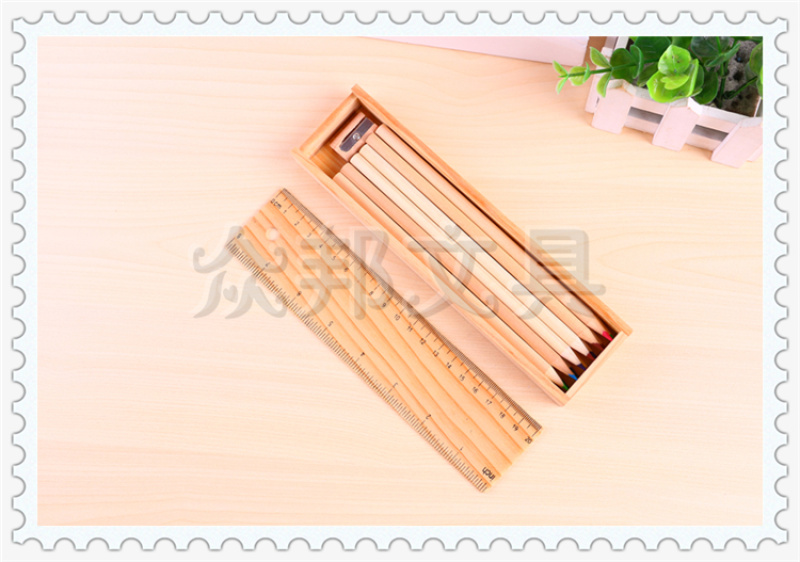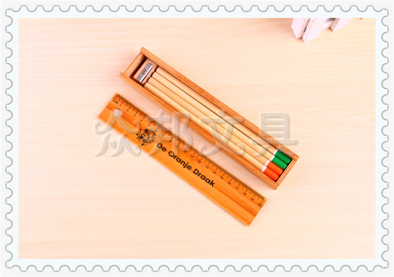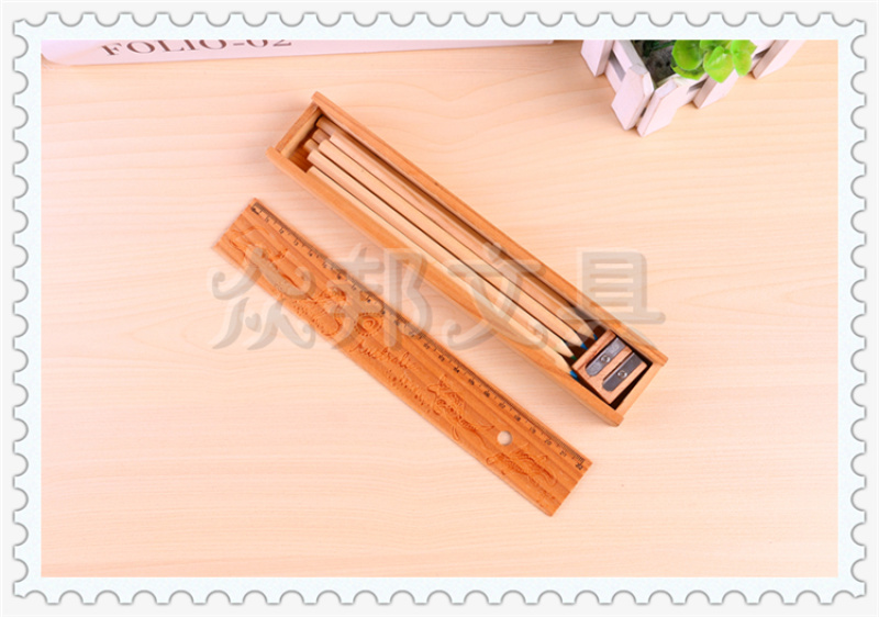 产品名称:时尚创意带刻度尺设计木盒包装铅笔加卷笔刀套装 款式多样