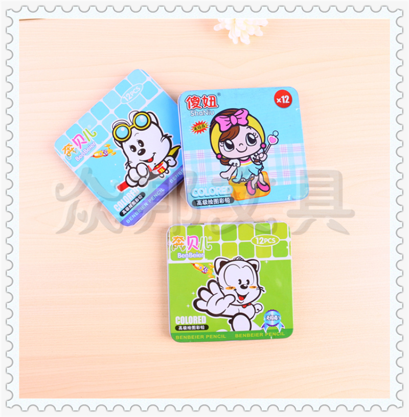 产品名称:众邦文具出品 多彩铁盒包装十二色高级绘图彩铅 盒身图案多样