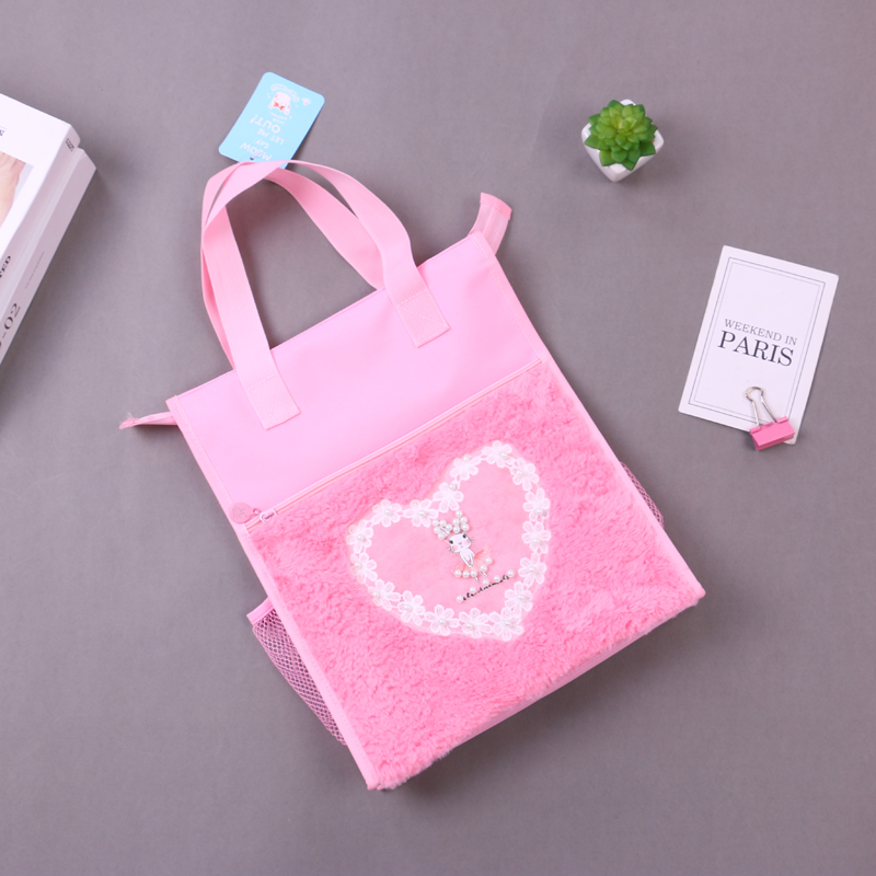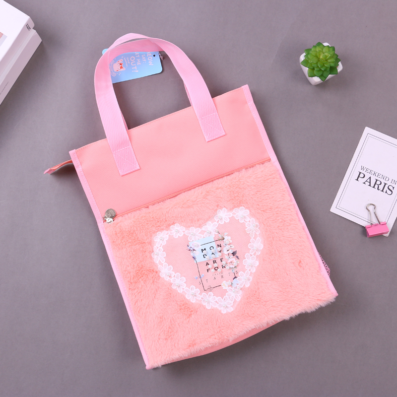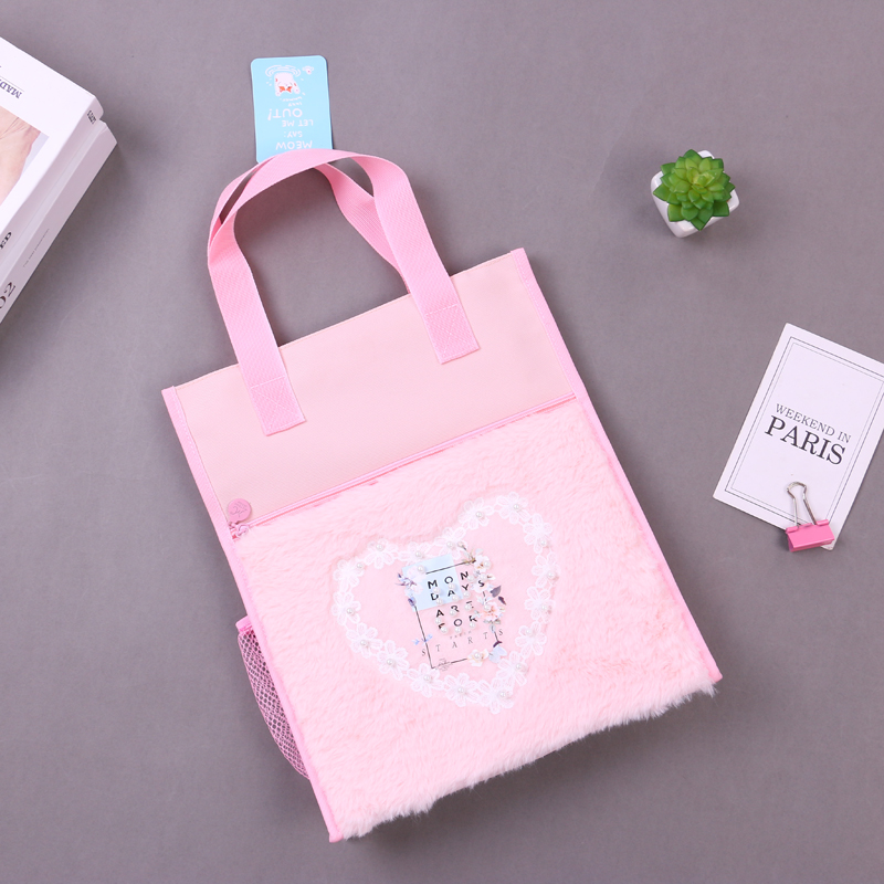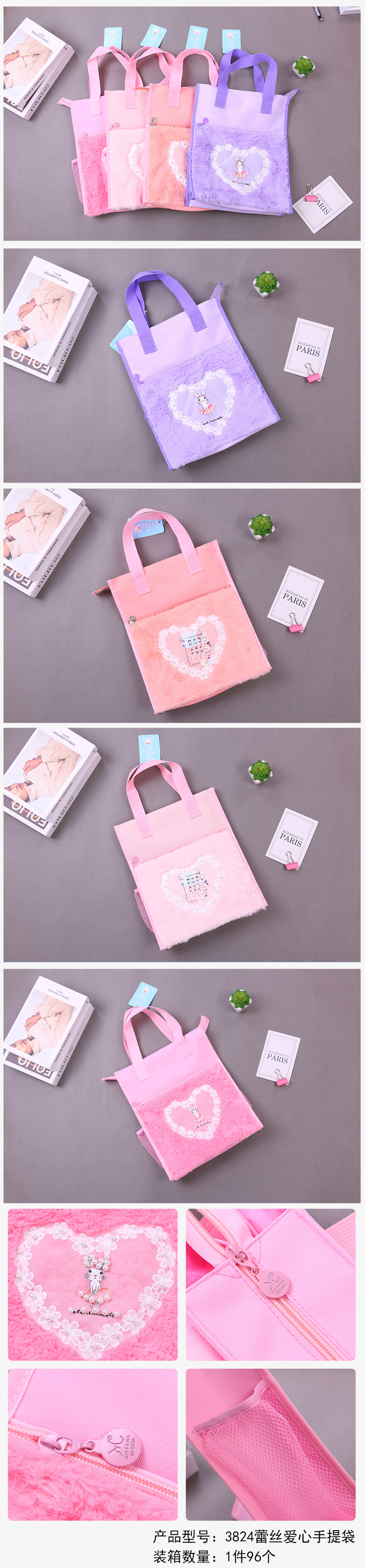 产品名称:3824蕾丝爱心图案手提袋 学生用多色可爱试卷收纳拎书补课作业袋