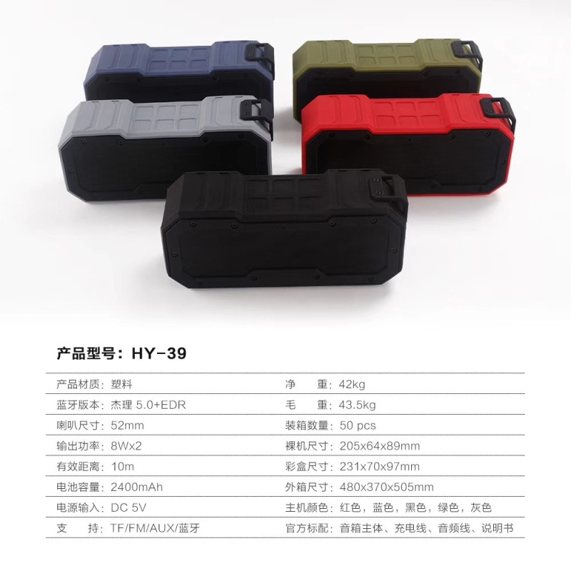 HY-39无线蓝牙户外运动便携式音响收音插卡七级防水工厂直发 投诉