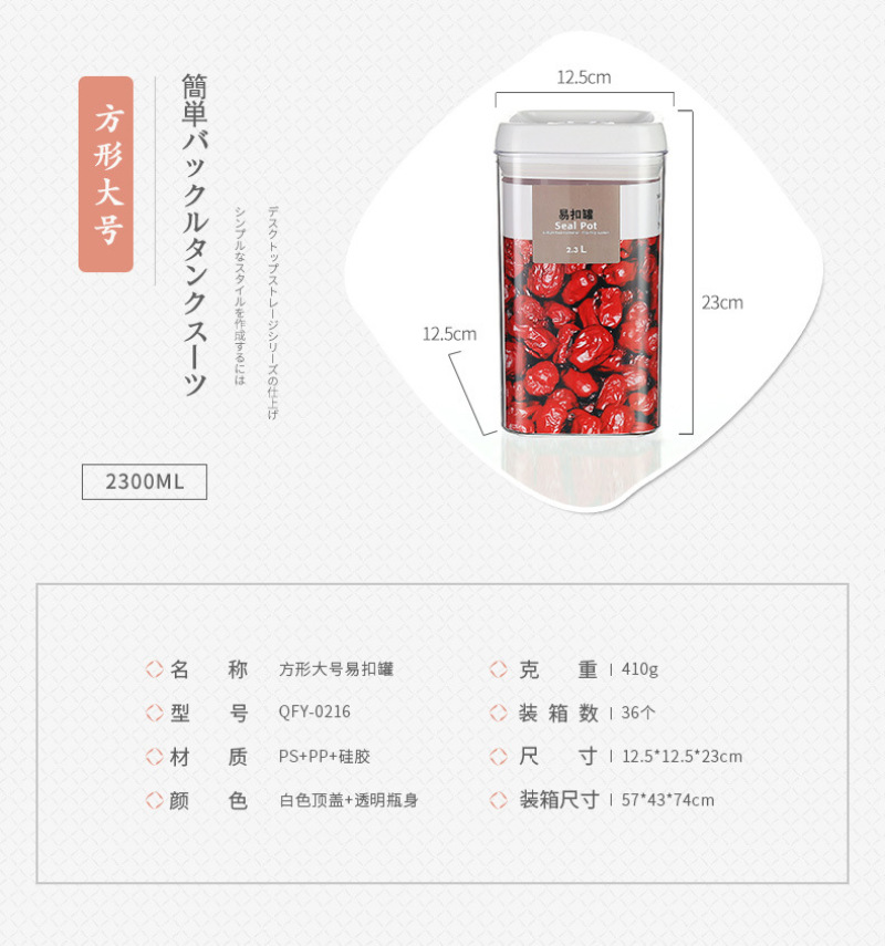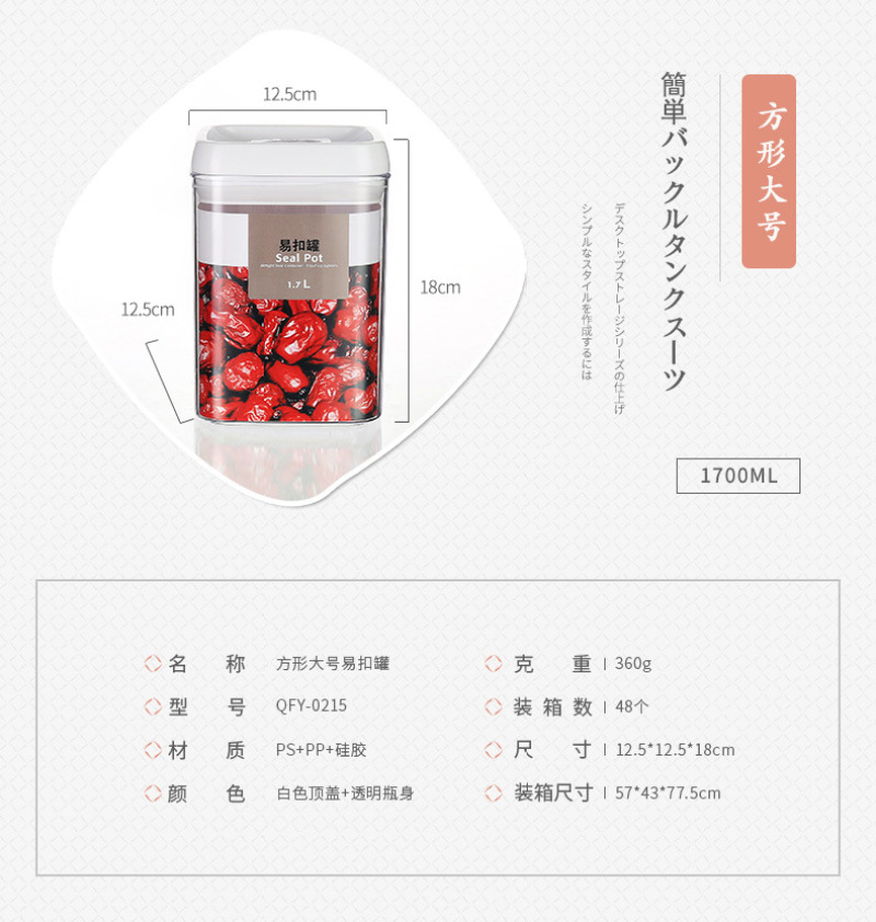 QFY-0210-17.0235-36方形透明塑料密封罐1L易扣多规格厨房置物罐 投诉