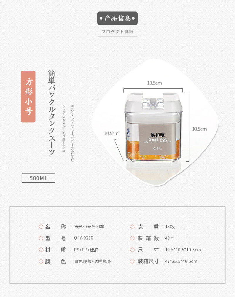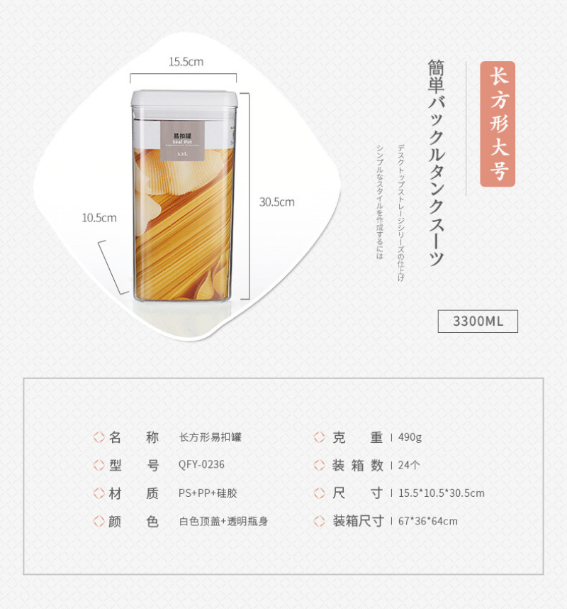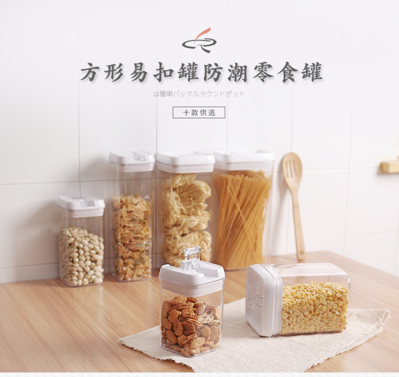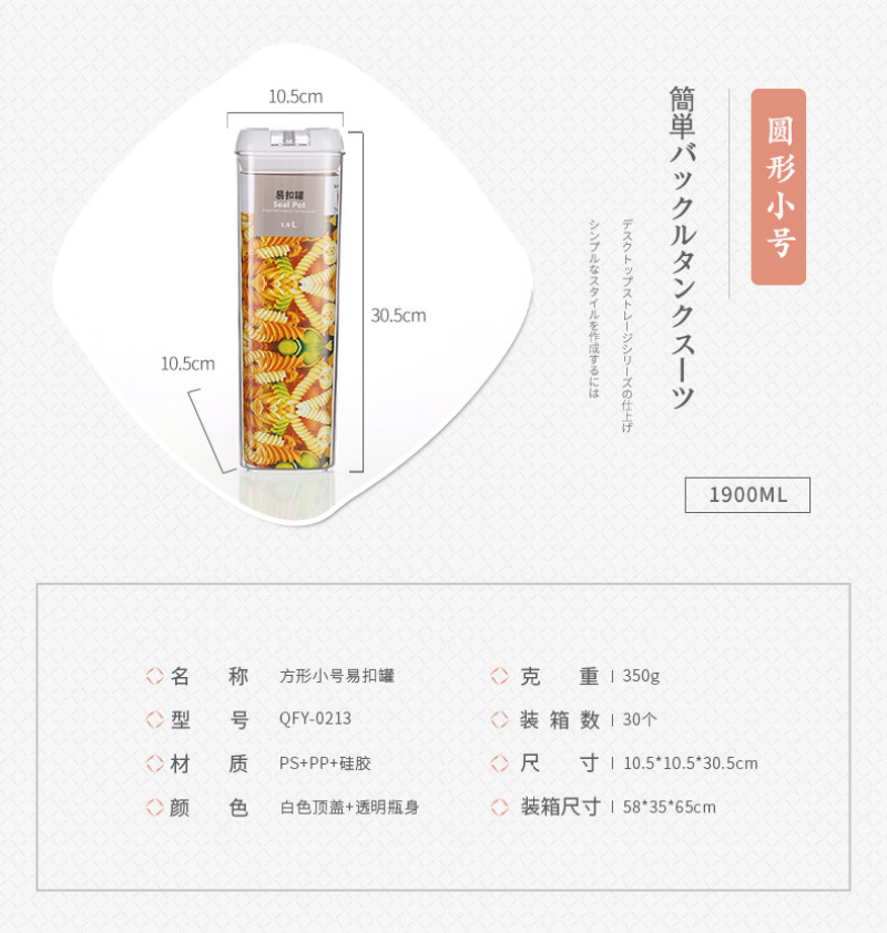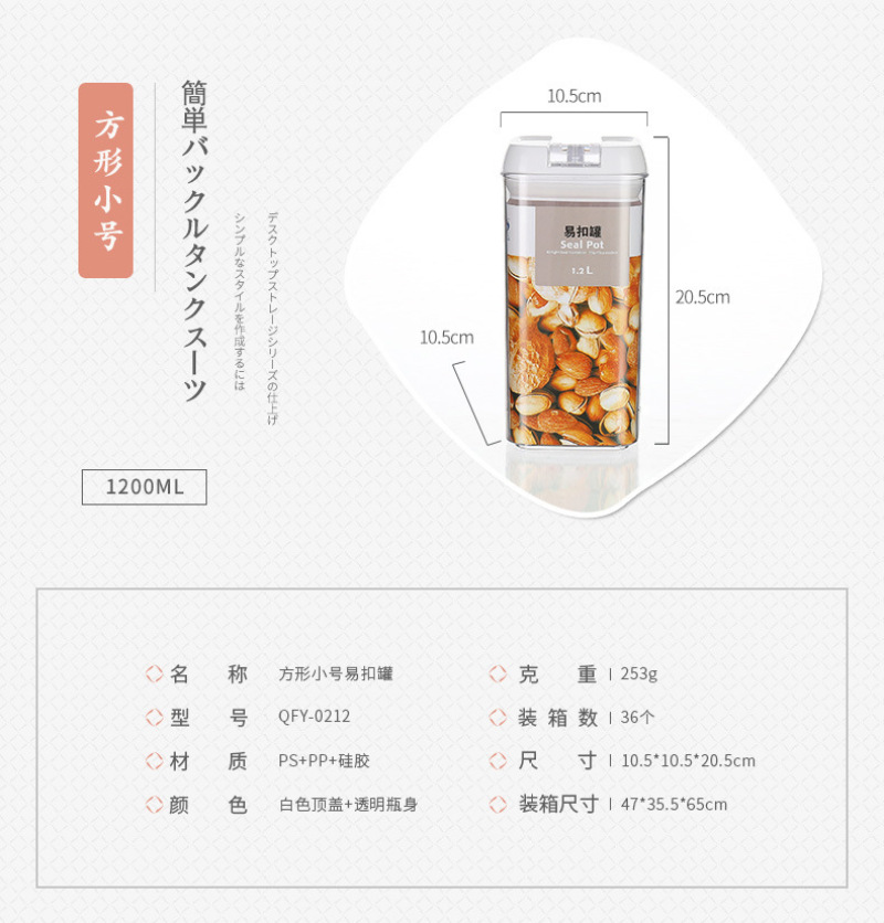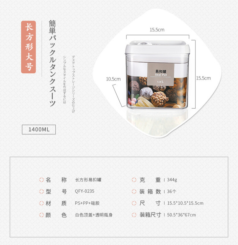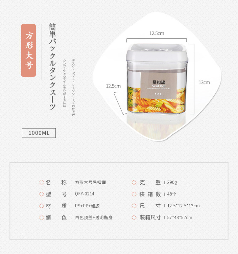 QFY-0210-17.0235-36方形透明塑料密封罐1L易扣多规格厨房置物罐
