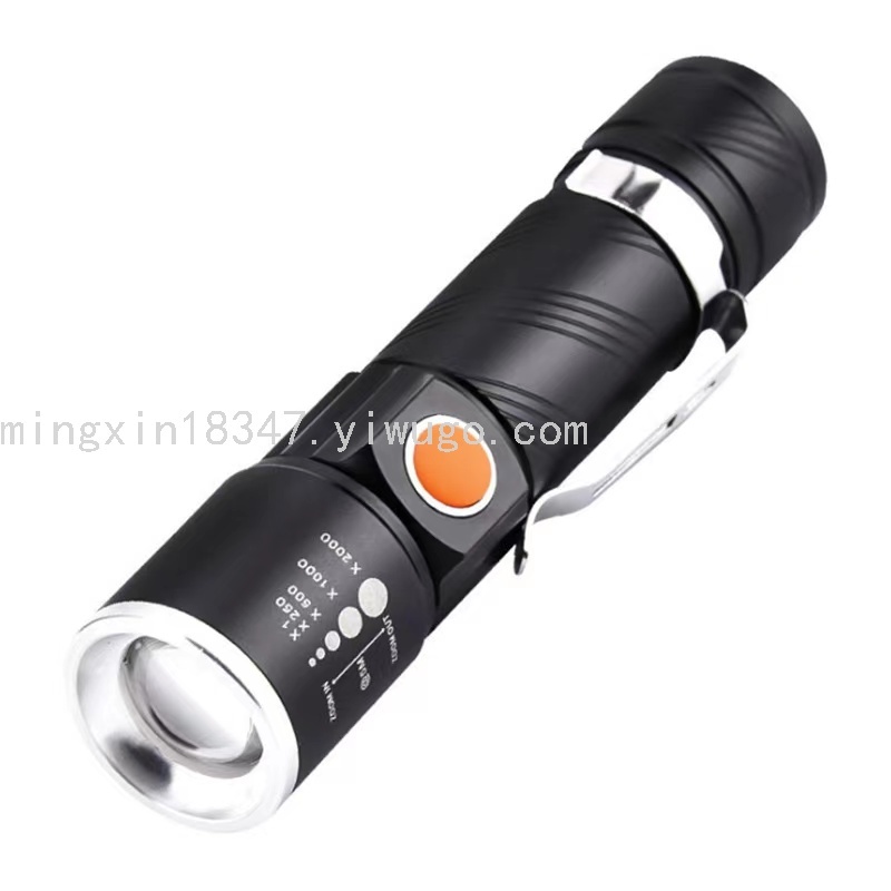 标准式USB充电,一体式灯体,安全,省心。选用航空铝合金材质作为灯体的主要材料,抗 压性强,防划防腐蚀,手感舒适,橡胶防水开关,既是开关又是充电指示灯。伸缩式变焦,方便简洁, 适合出门携带或作为节日小礼品,促销。