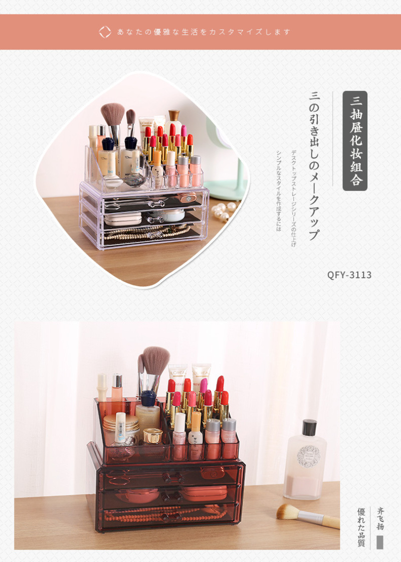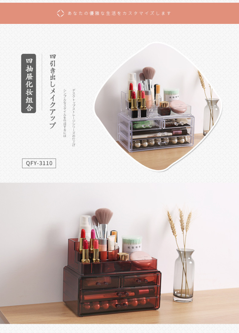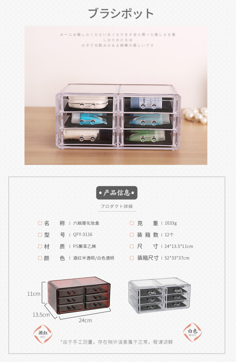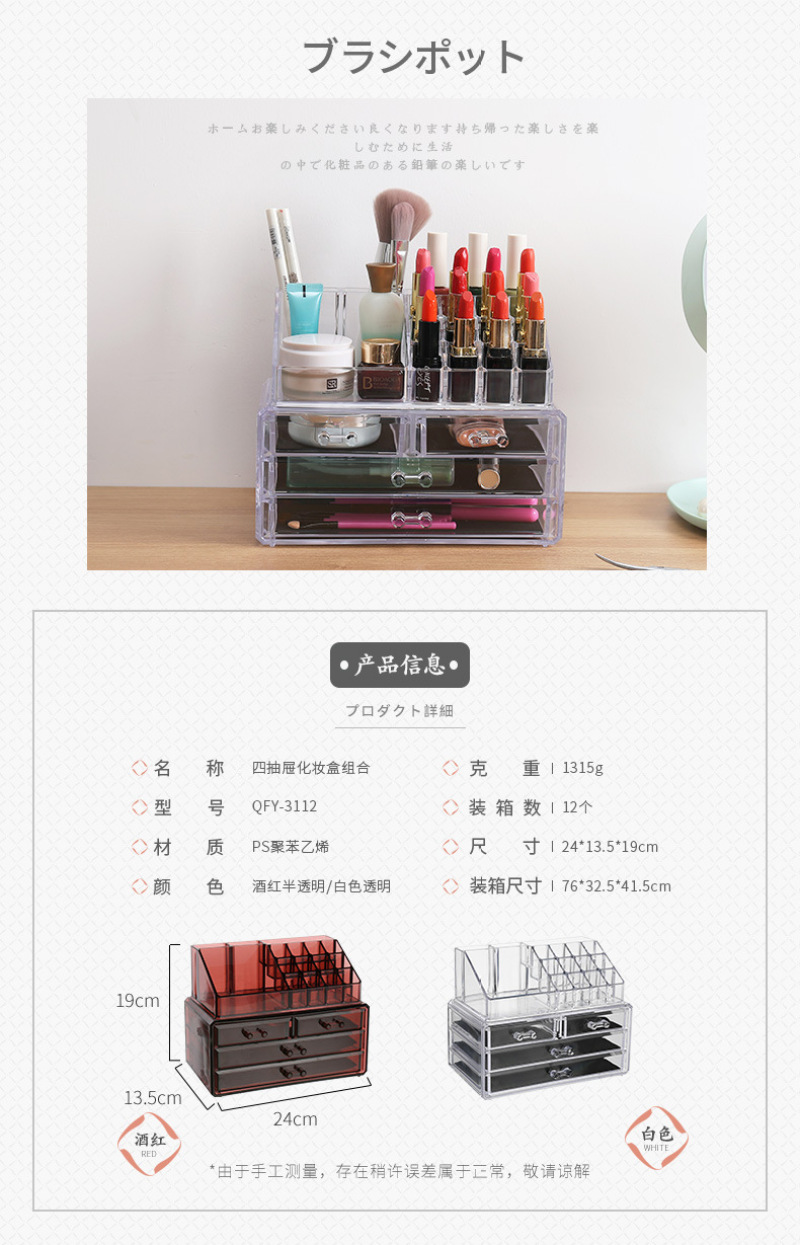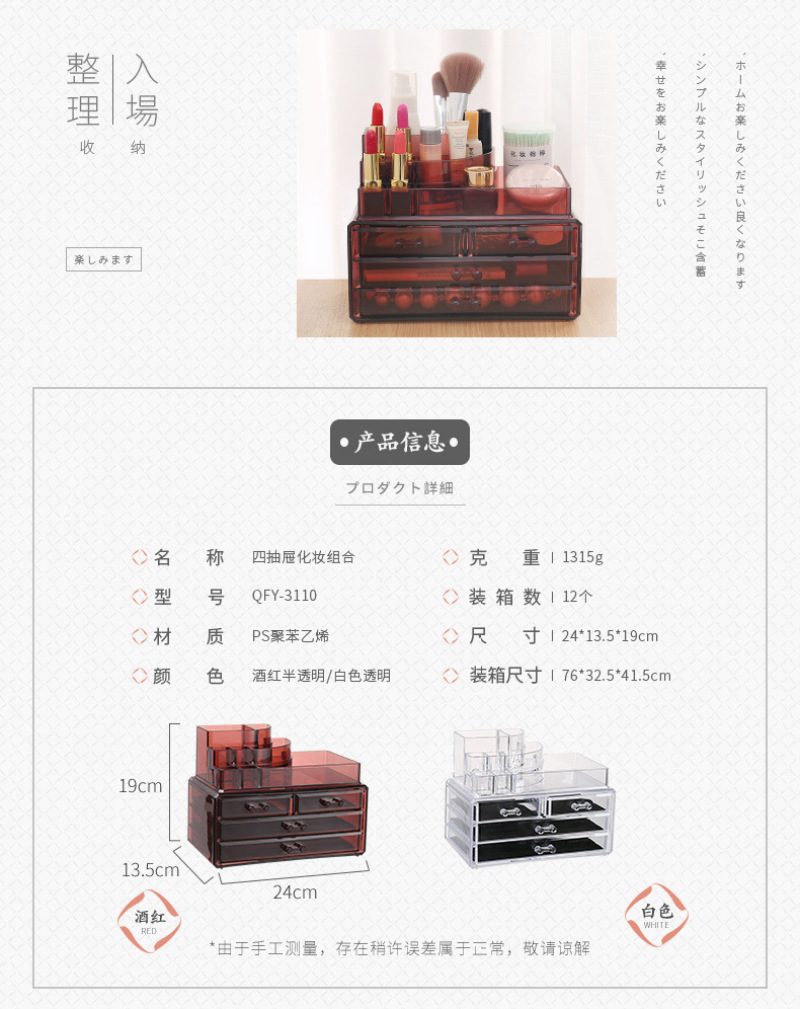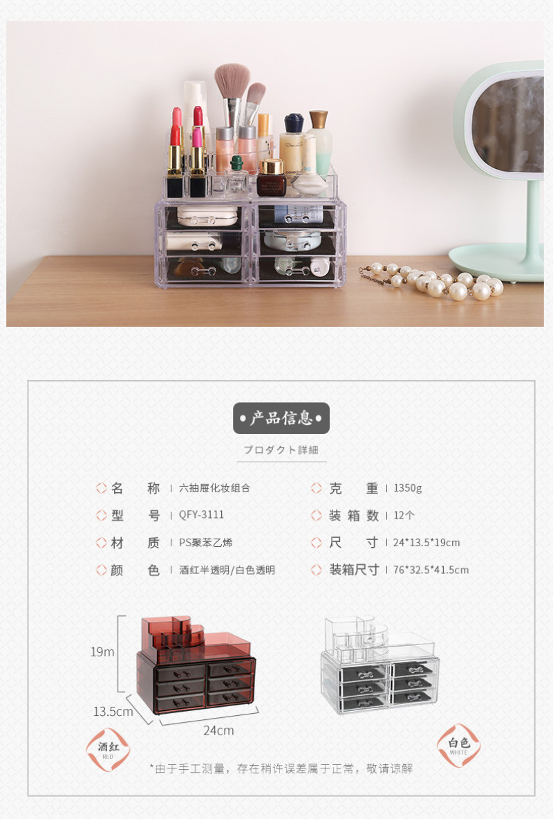 QFY-3110一3116塑料水晶化妆收纳盒优质酒红色首饰盒置物盒套装 投诉