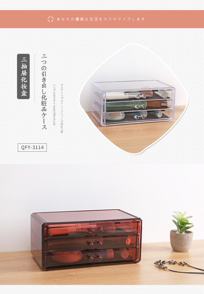 QFY-3110一3116塑料水晶化妆收纳盒优质酒红色首饰盒置物盒套装