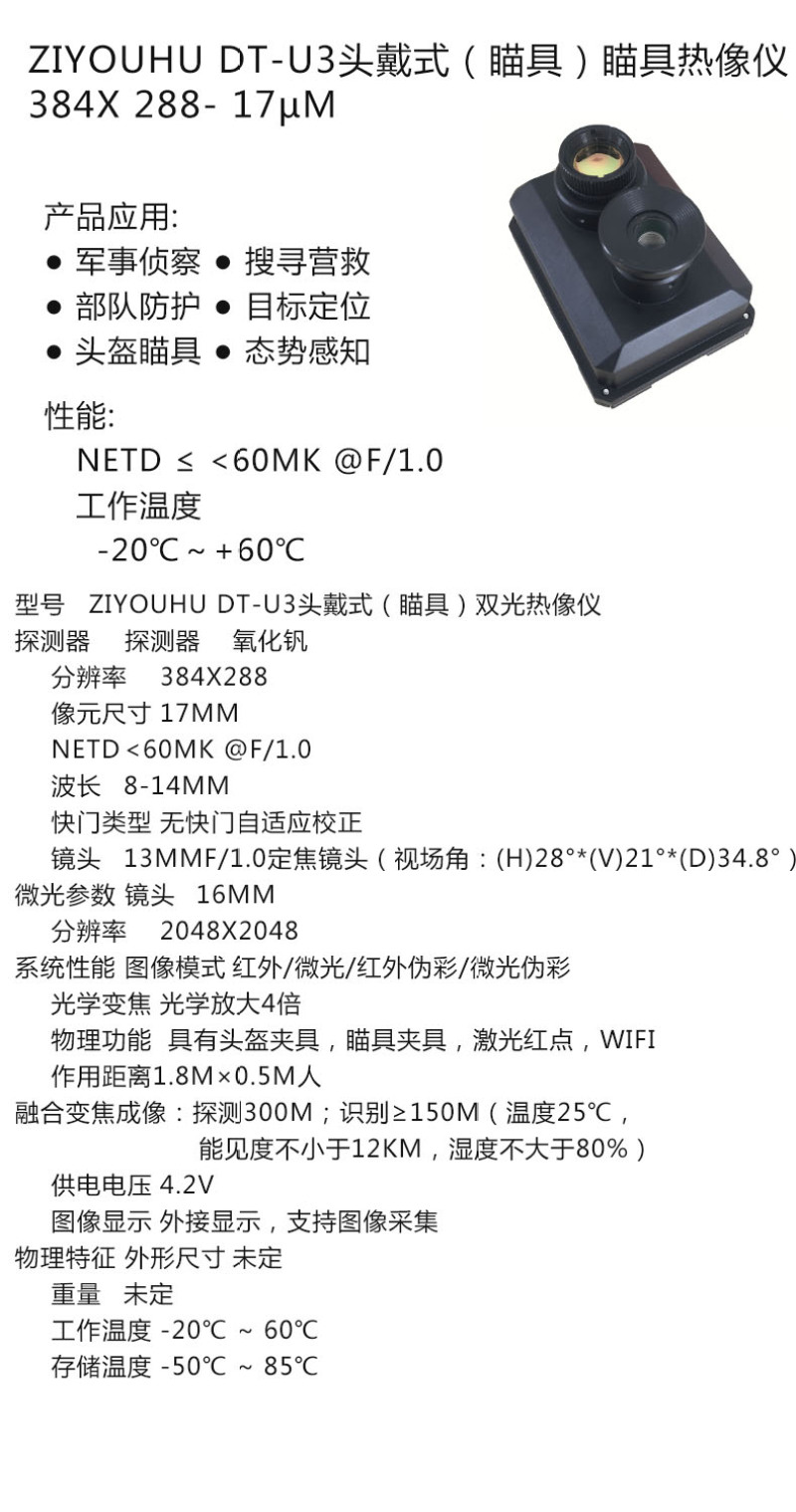 ZIYOUHU DT-U3头戴式瞄具热像仪 384Χ288- 17m红外望远镜批发 投诉