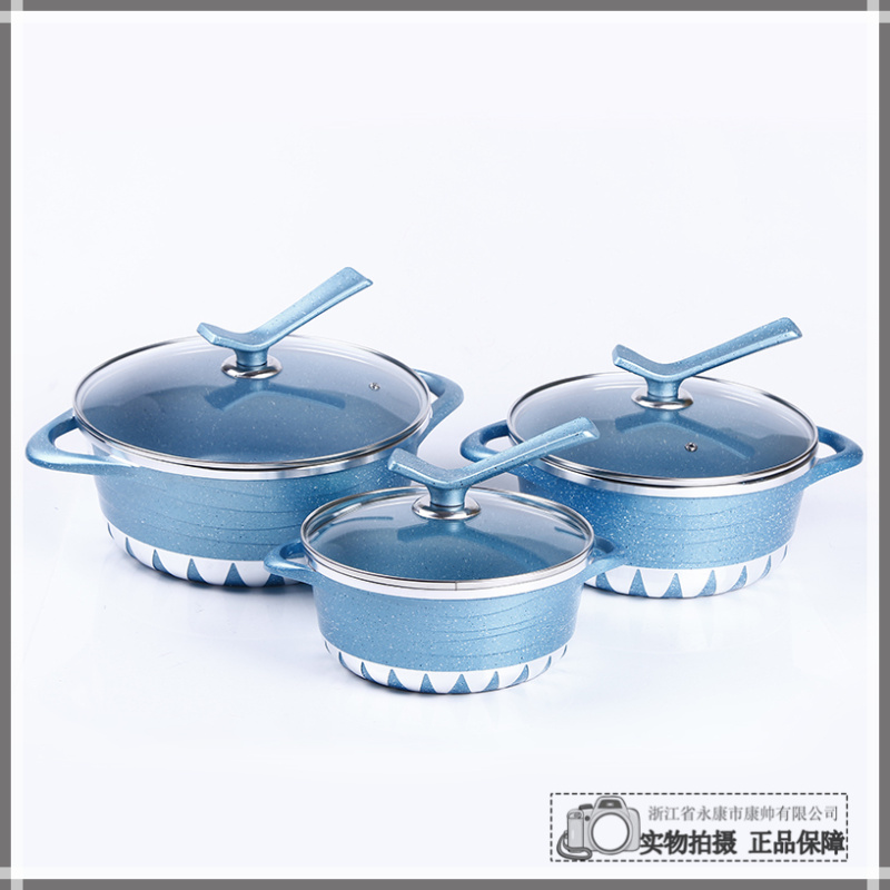 商品材质:合金锅体+不锈钢和玻璃锅盖