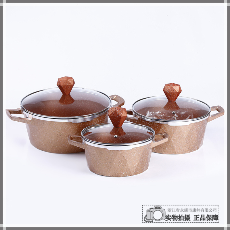 商品材质:合金锅体+不锈钢和玻璃锅盖
