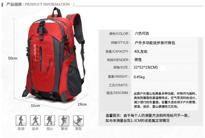 新款40L户外登山包大容量旅行户外包运动登山包徒步双肩登山背包 English | 投诉