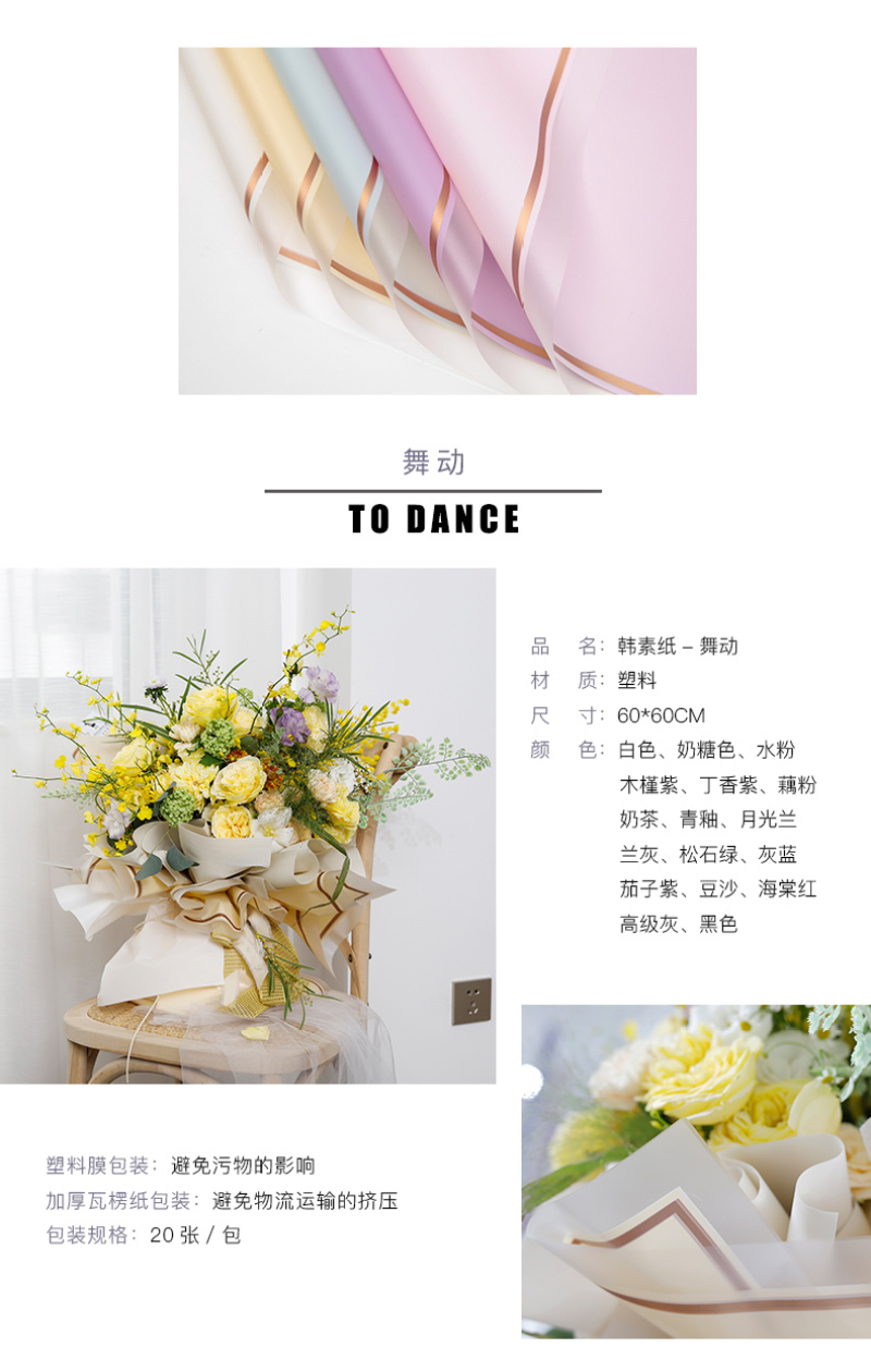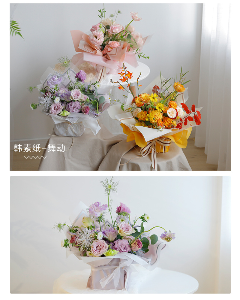 花衣裳新品韩素纸舞动防水鲜花花束包装纸玫瑰花包装材料花店资材 投诉