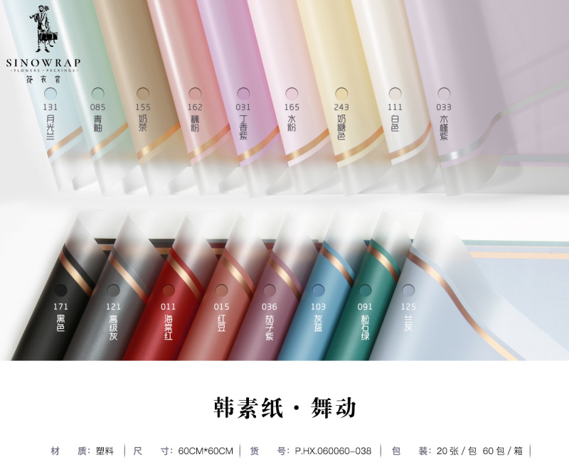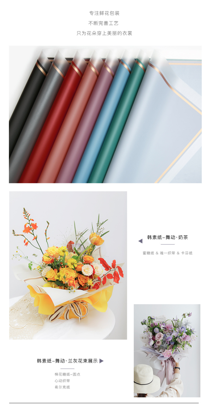 • 花衣裳品牌鲜花包装纸厂家直销 &价格合理专业生产批发鲜花包装纸,韩素纸,雾面纸,欧雅纸,彩带,欢迎来店59号门5街1楼H1-22342店面。客服微信:13750961181