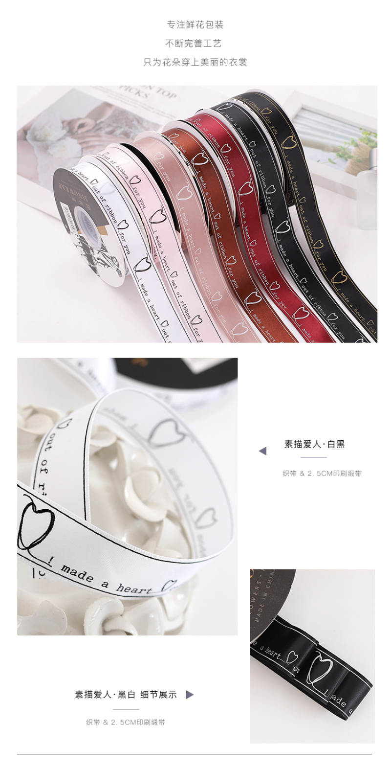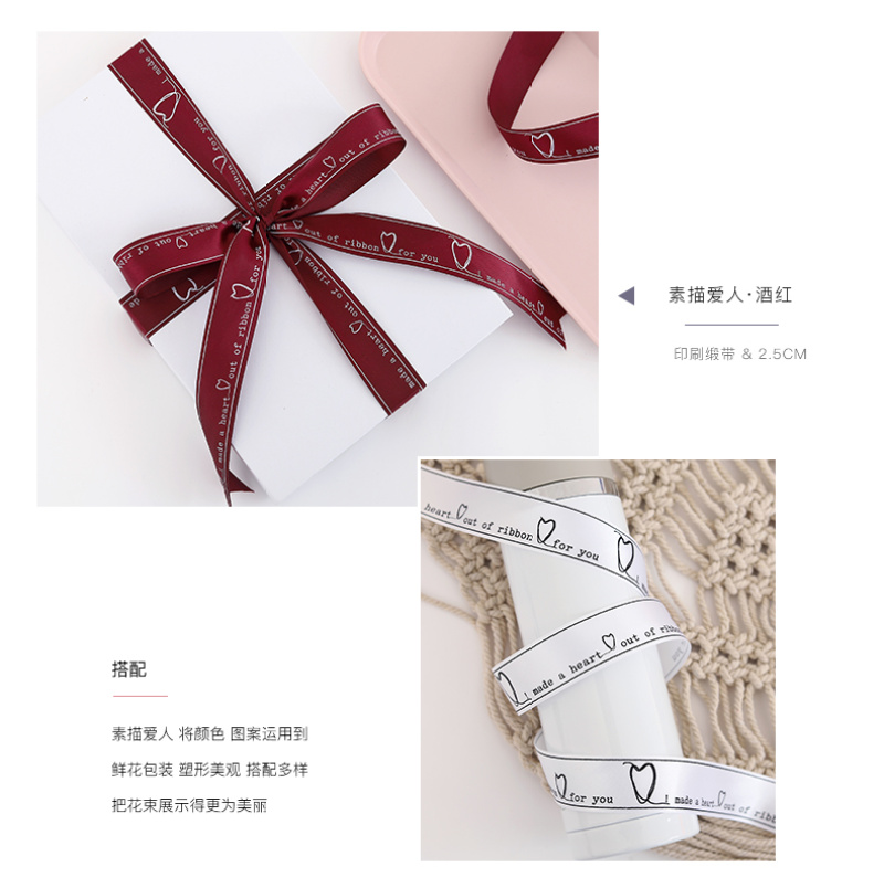 花衣裳新款2.5印刷缎带素描爱人蛋糕缎带花店用品礼品包装彩带