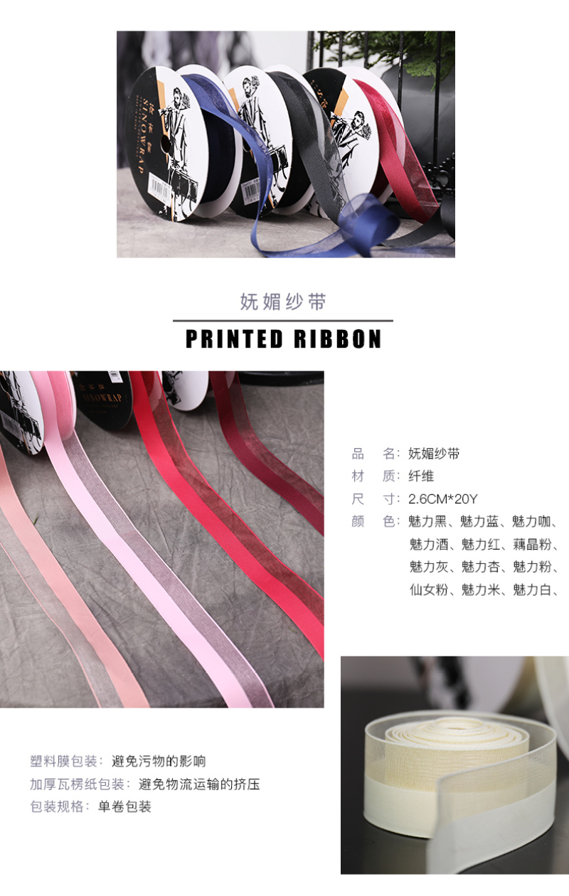 花衣裳新款妩媚纱带鲜花包装丝带缎带雪花艺包装材料花店用品带 投诉
