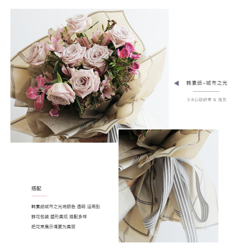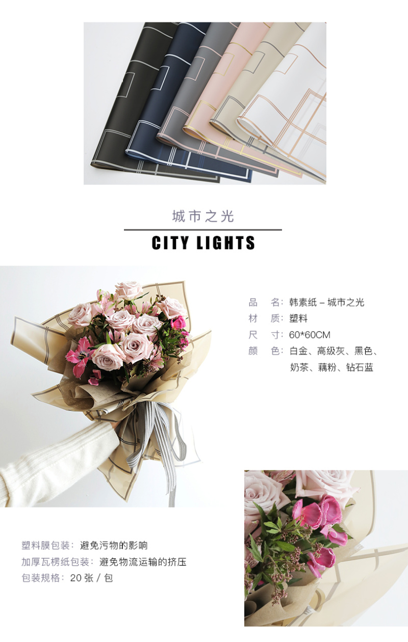 花衣裳新品城市之光包装纸防水鲜花玫瑰花包装纸花艺包装资材 投诉