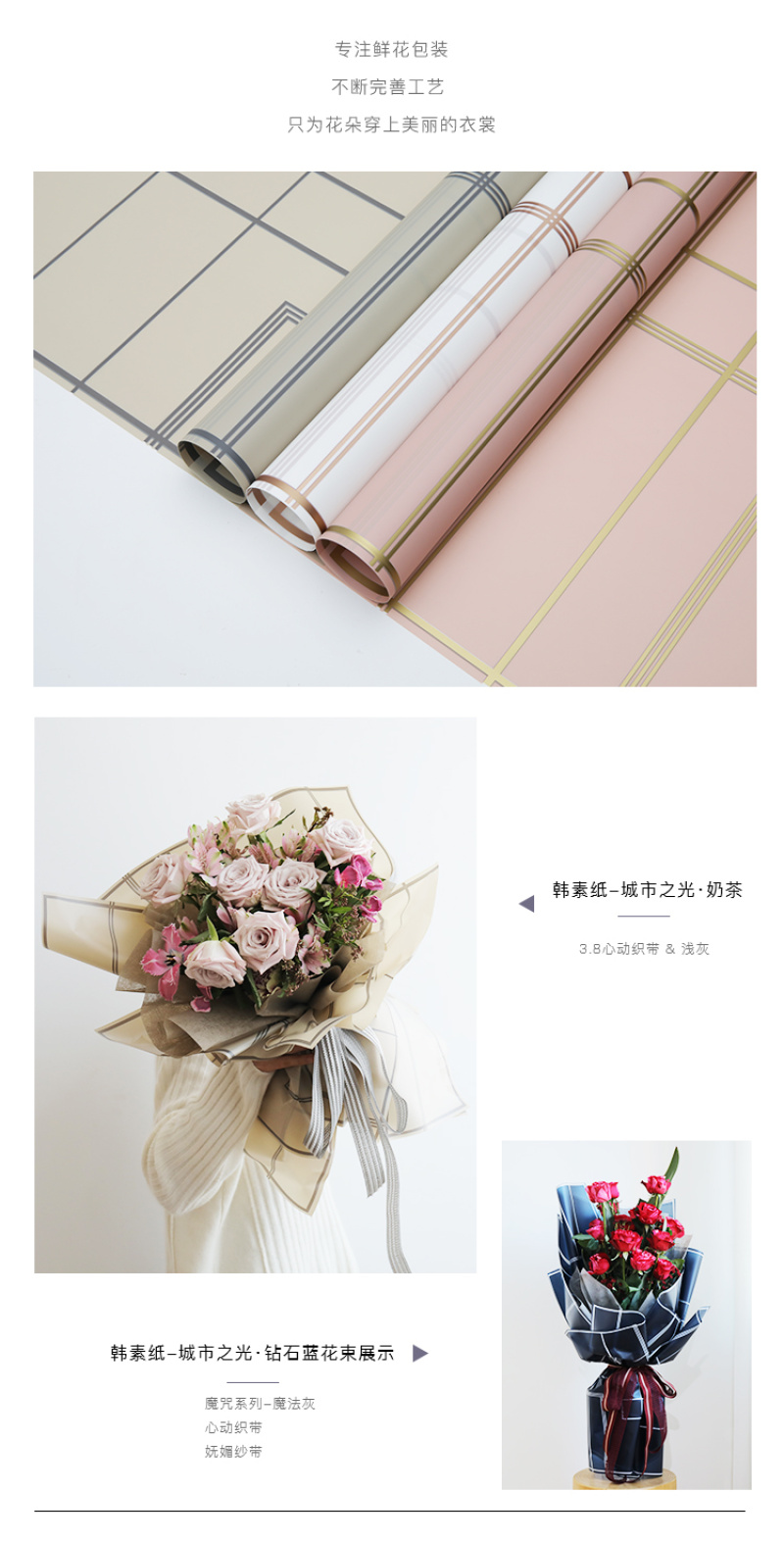 • 花衣裳品牌鲜花包装纸厂家直销 &价格合理专业生产批发鲜花包装纸,韩素纸,雾面纸,欧雅纸,彩带,欢迎来店59号门5街1楼H1-22342店面。客服微信:13750961181